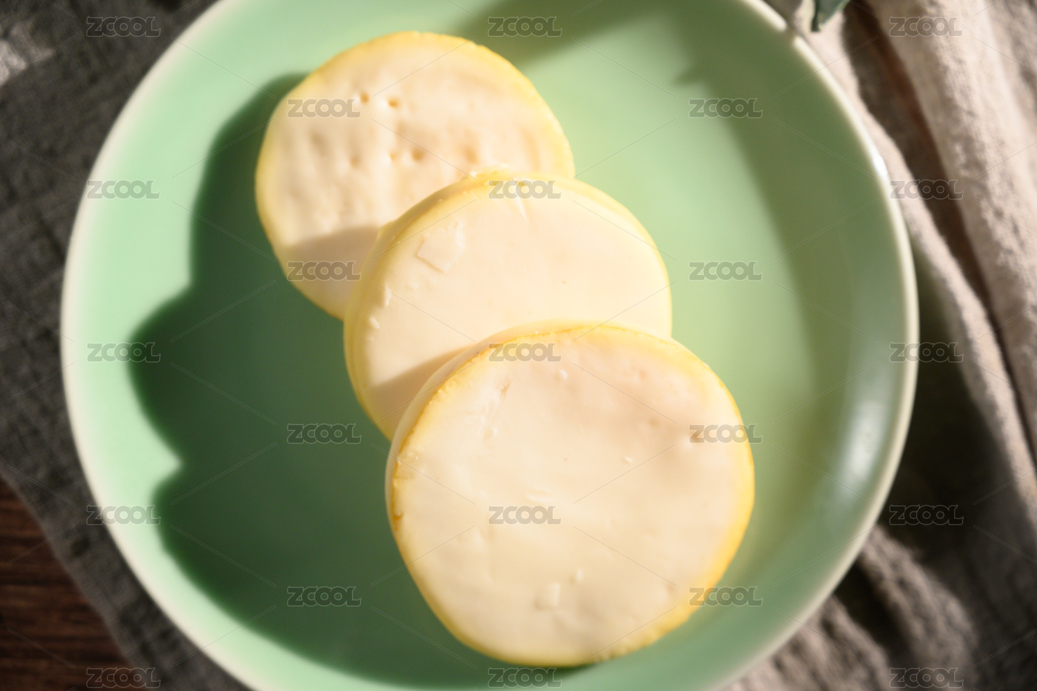 桌面上的盘子里的美味可口的白巧克力橙子片