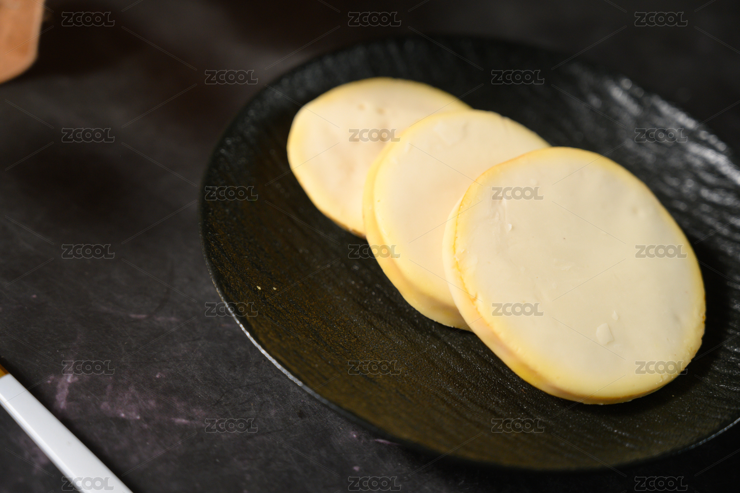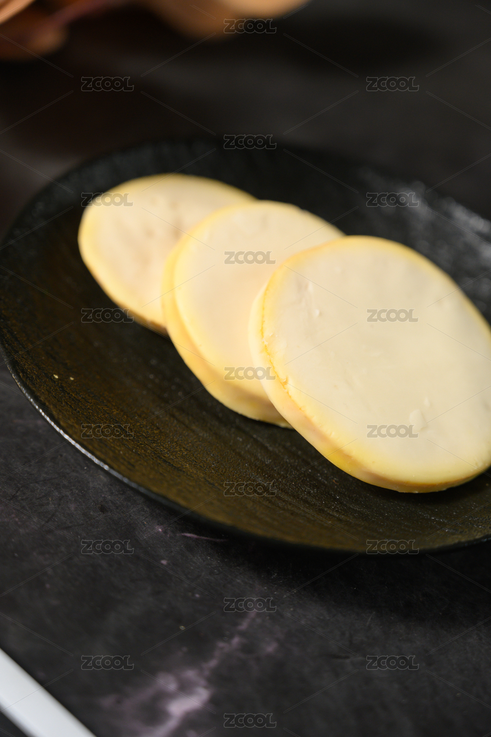 桌面上的盘子里的美味可口的白巧克力橙子片