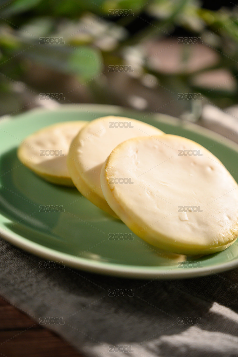 桌面上的盘子里的美味可口的白巧克力橙子片