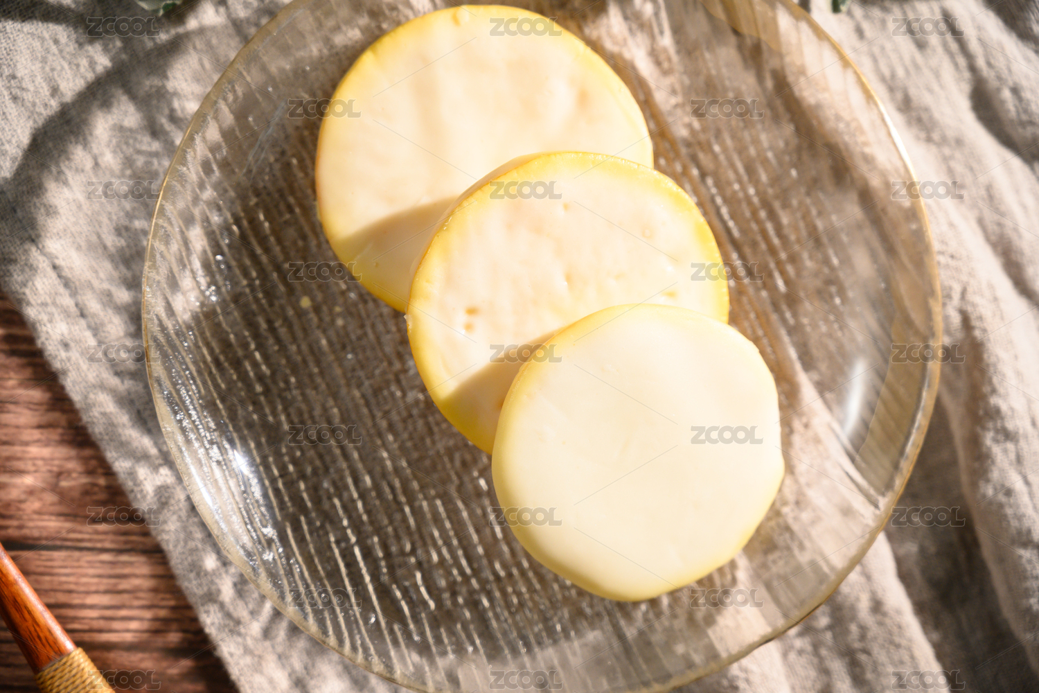 桌面上的盘子里的美味可口的白巧克力橙子片