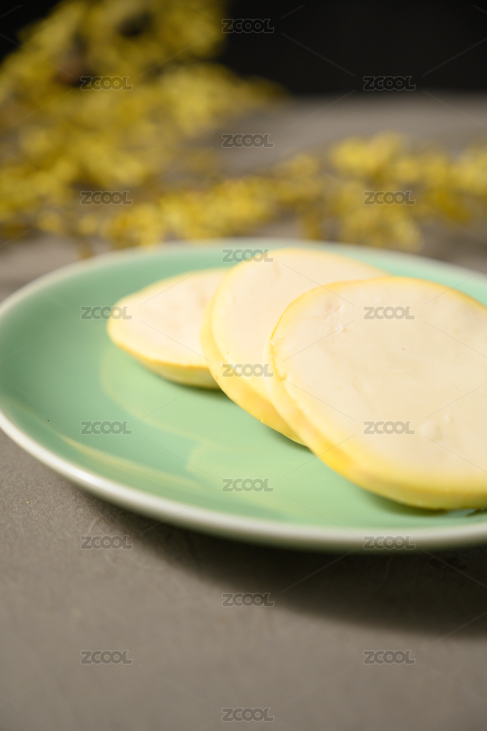 桌面上的盘子里的美味可口的白巧克力橙子片