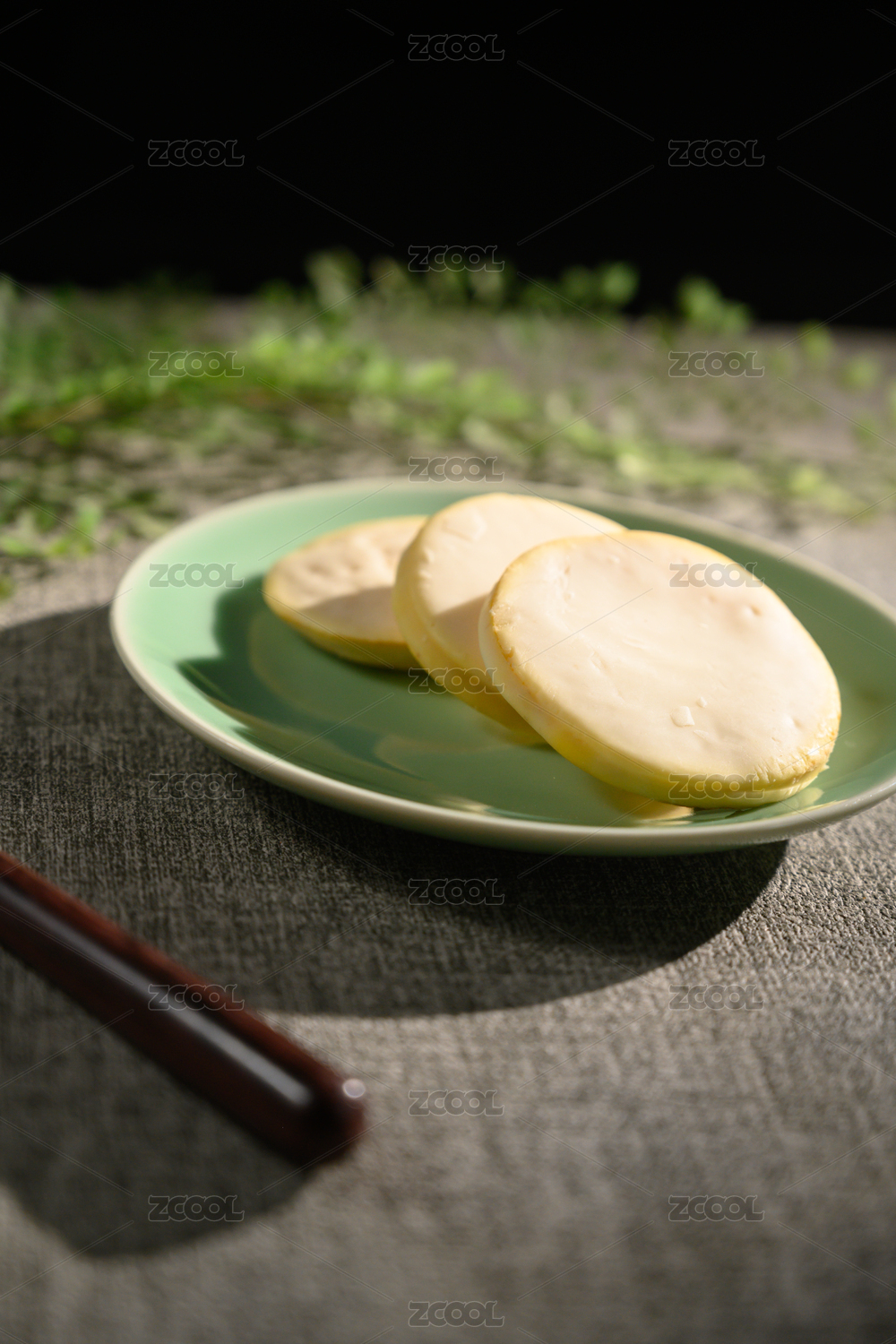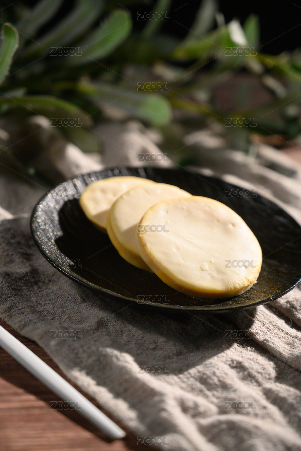 桌面上的盘子里的美味可口的白巧克力橙子片