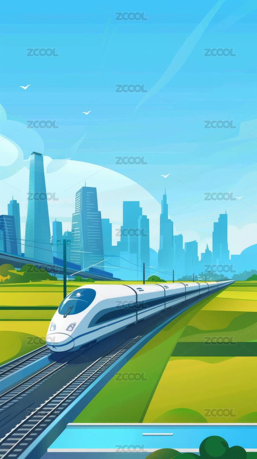 高铁经过城市插画