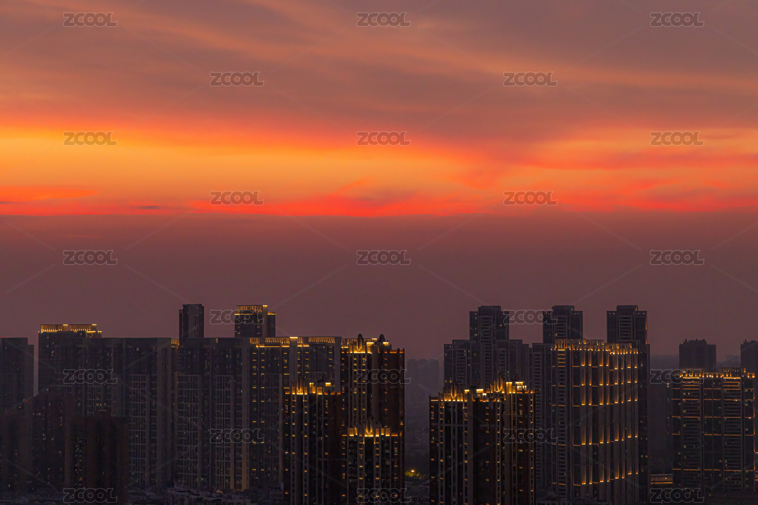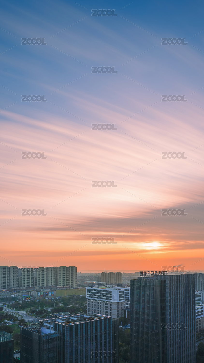 城市上空落日晚霞