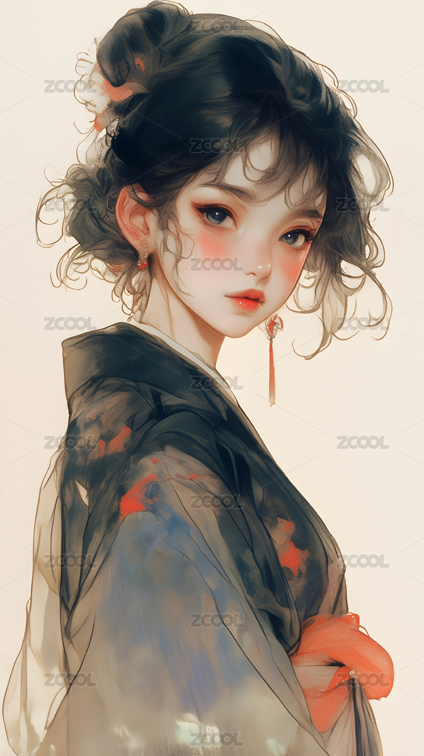 女子,插画,卡通,漫画,背景,细腻,表情,绘画,细节,美丽