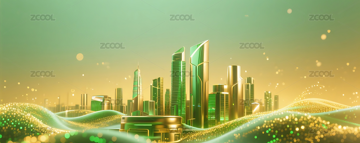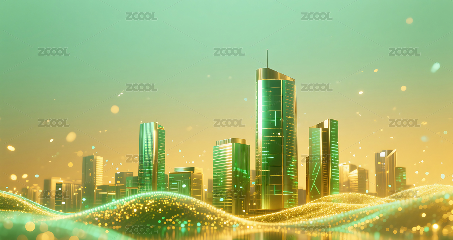 绿金色流动粒子金属城市建筑背景