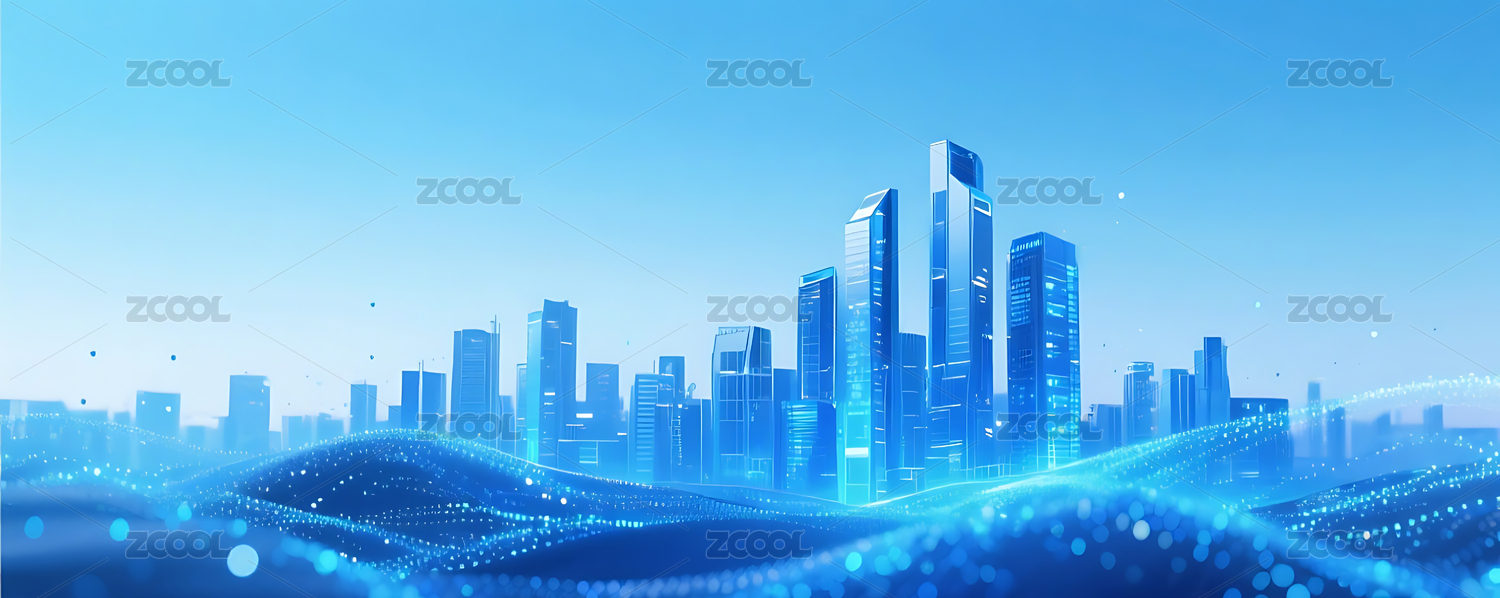 蓝色流动粒子金属城市建筑背景