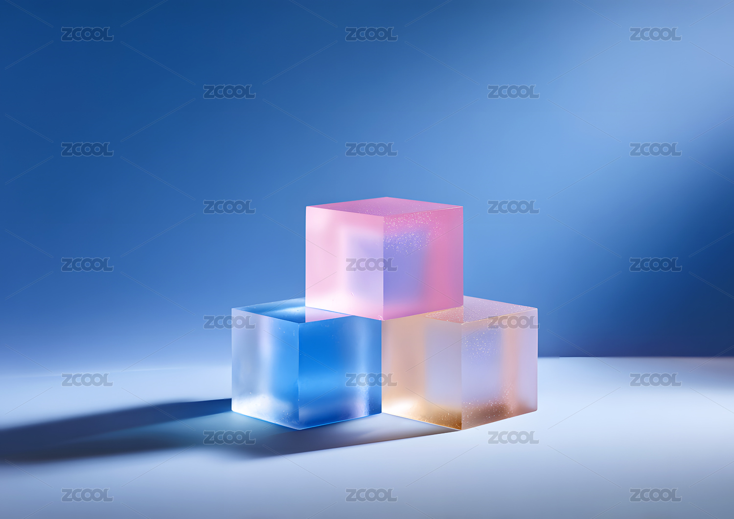 透明立方体在柔和光线下的静物展示