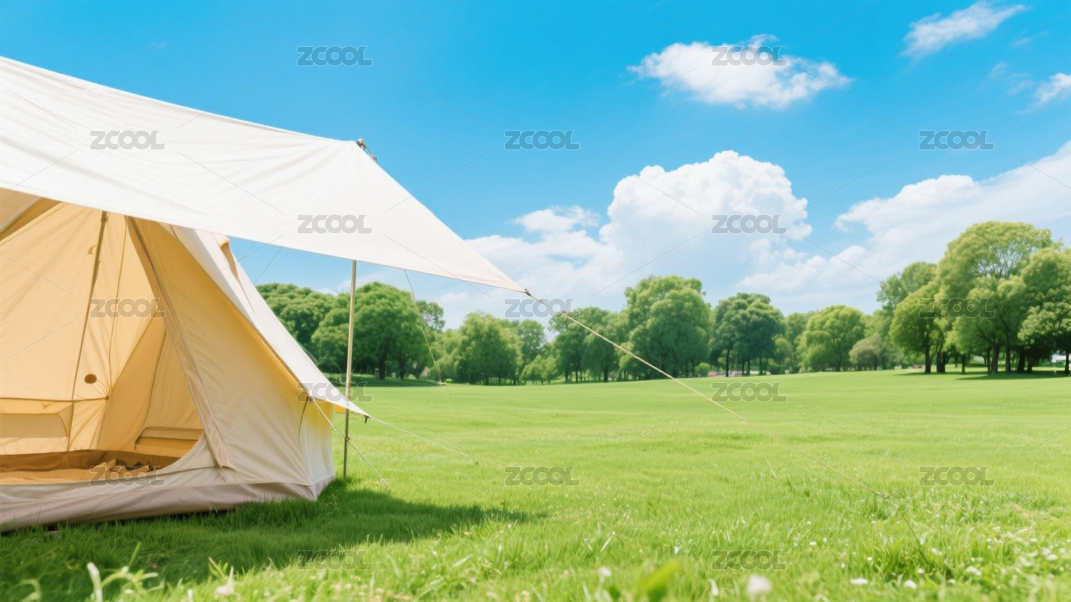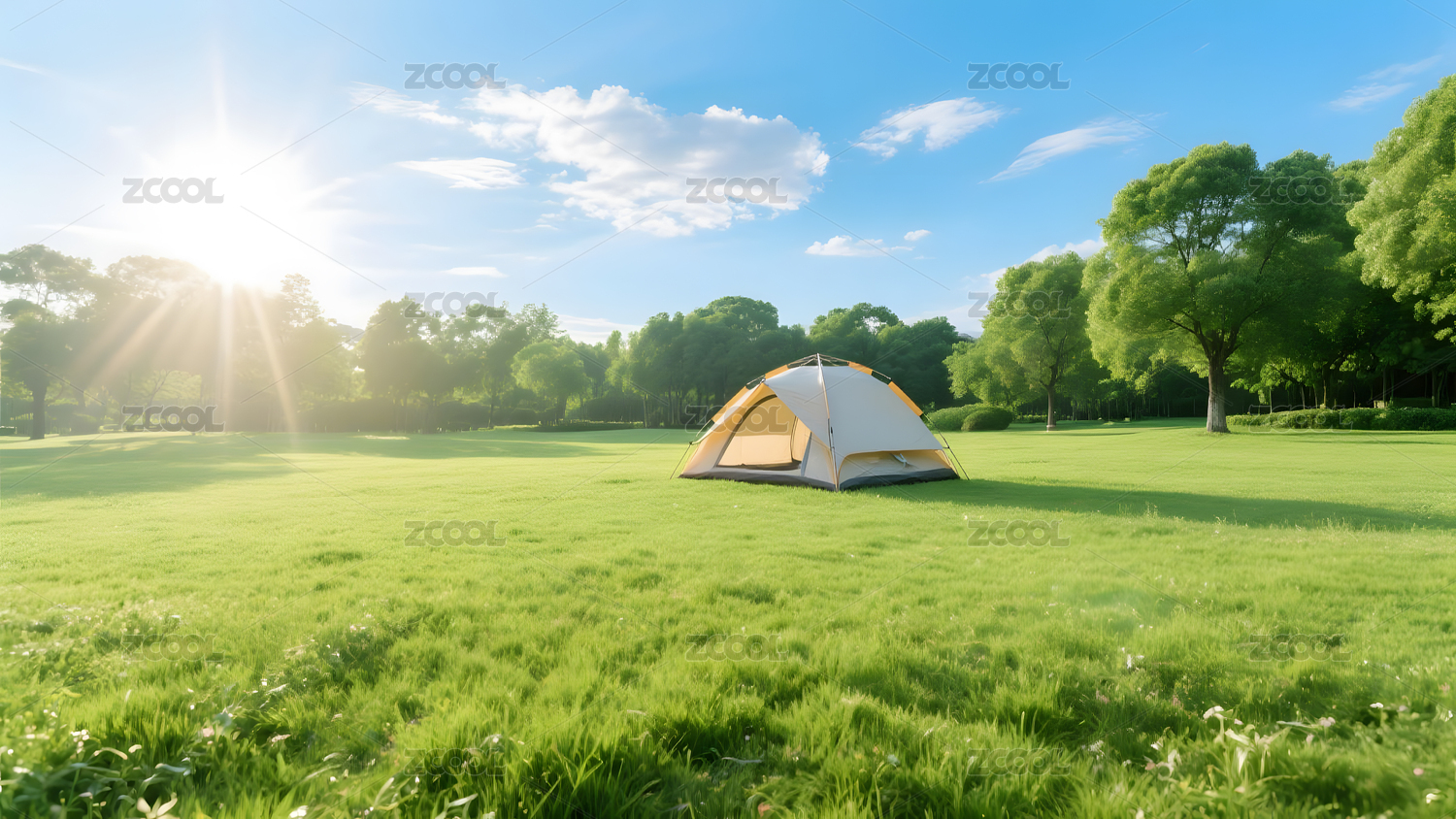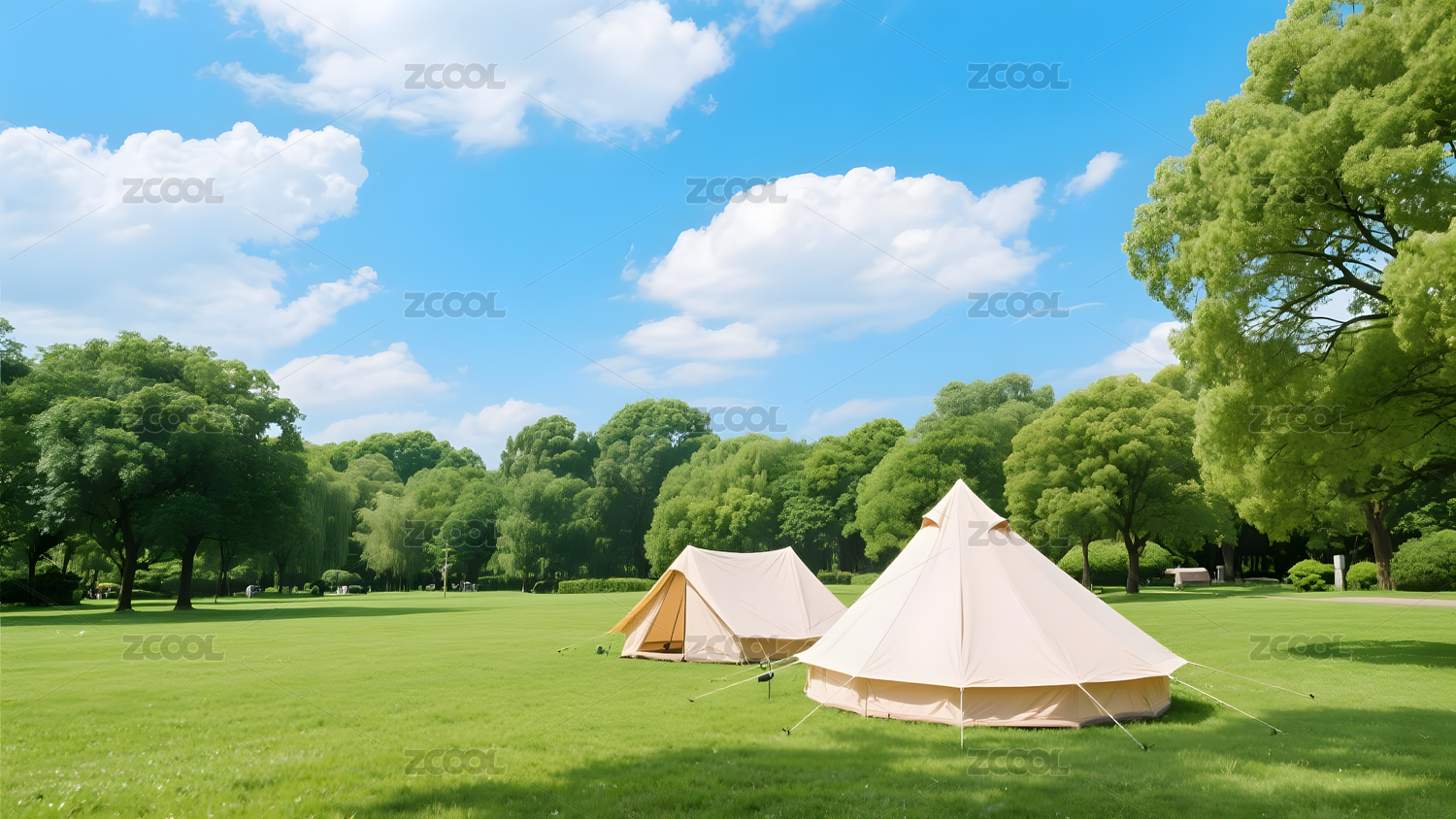 夏季武汉梨园景区内在草坪上搭帐篷露营