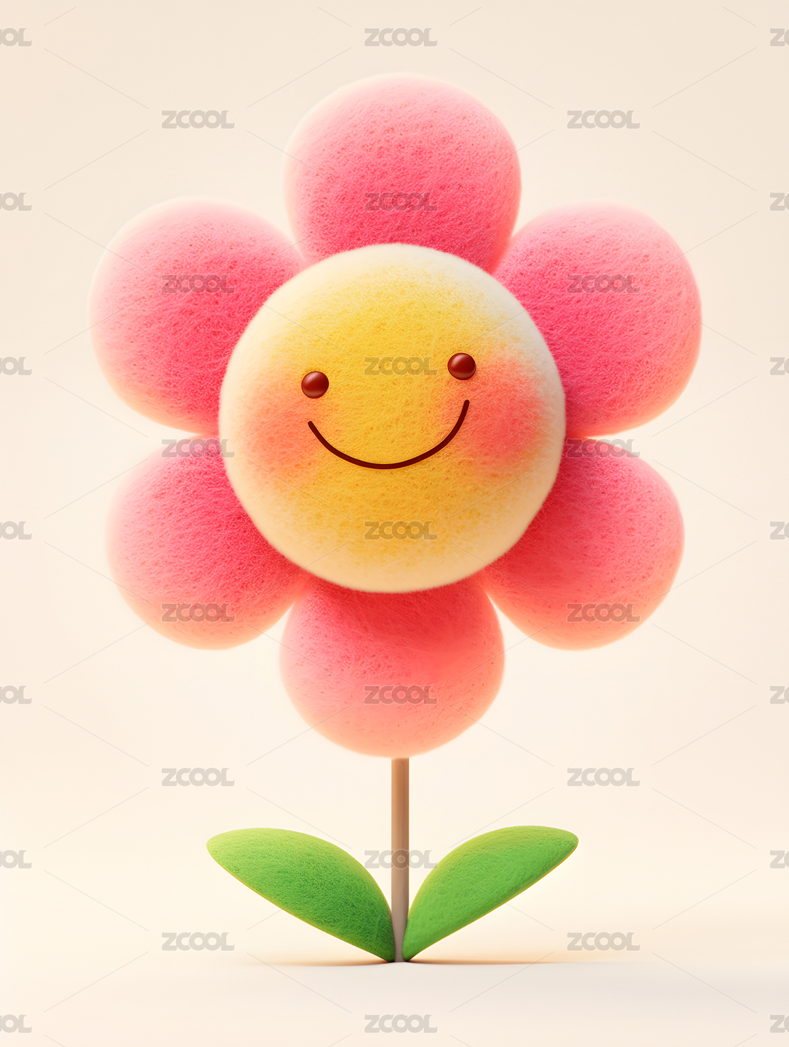 一朵毛毡质感的笑脸花朵