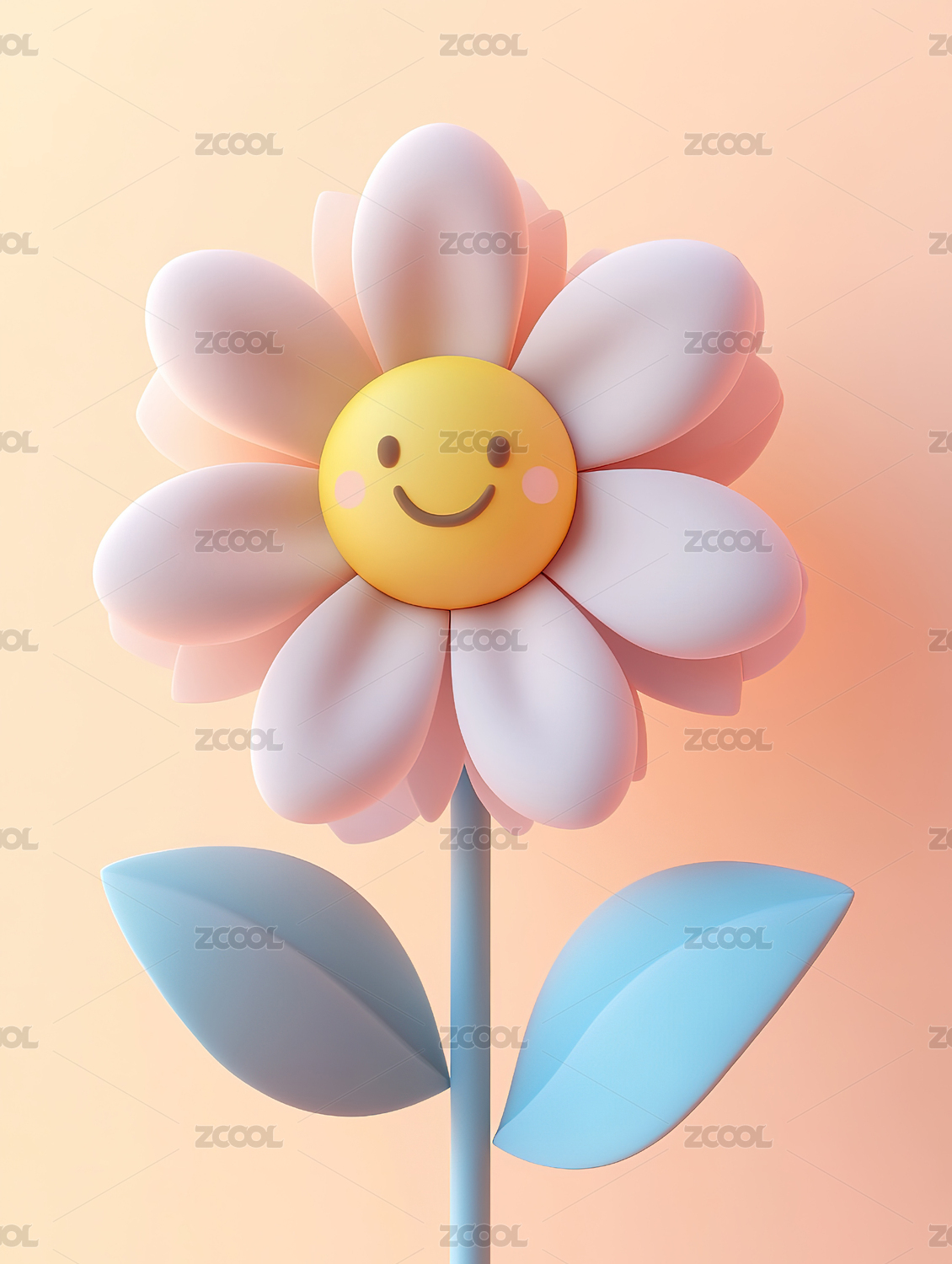 3D渲染一朵小清新花朵纯色背景静物
