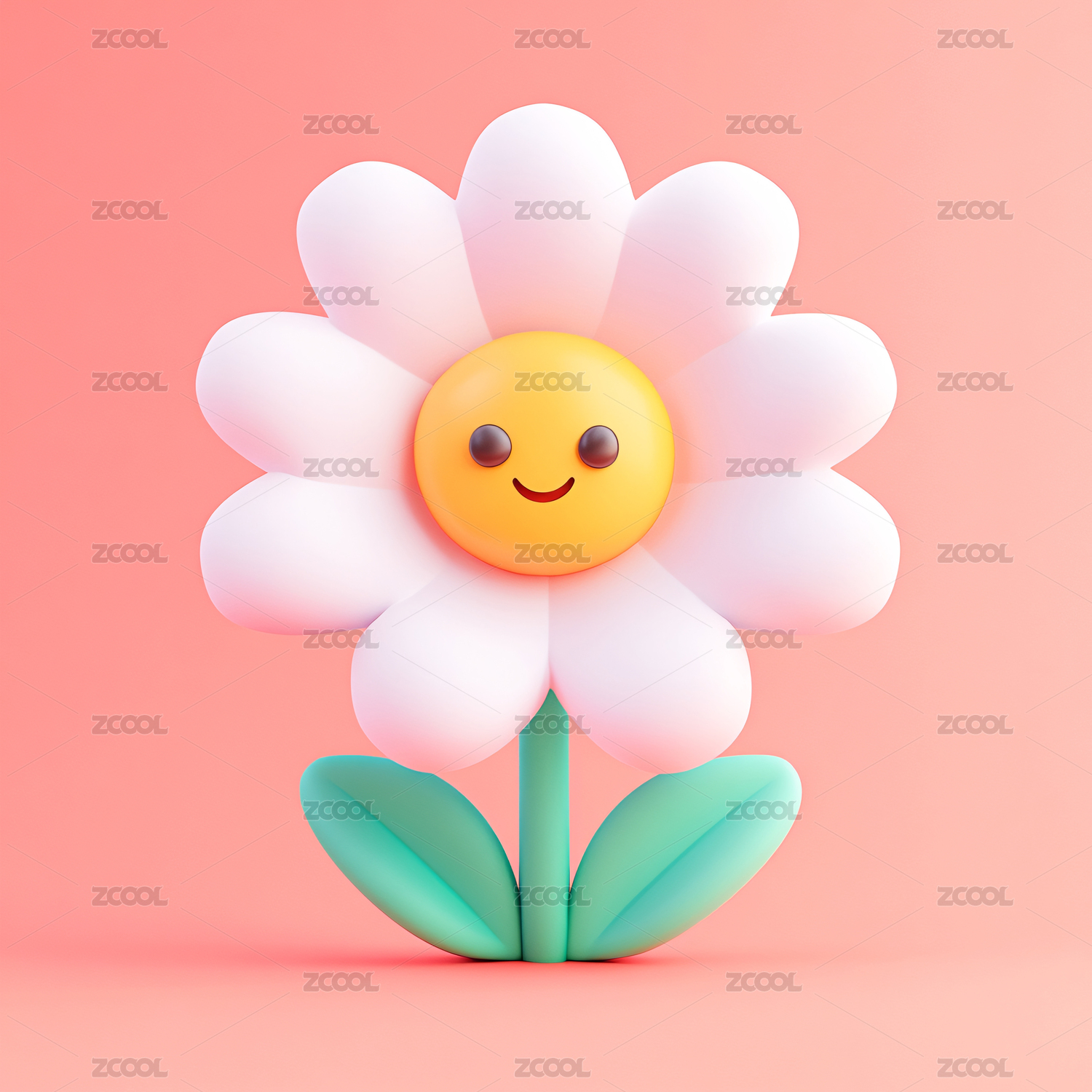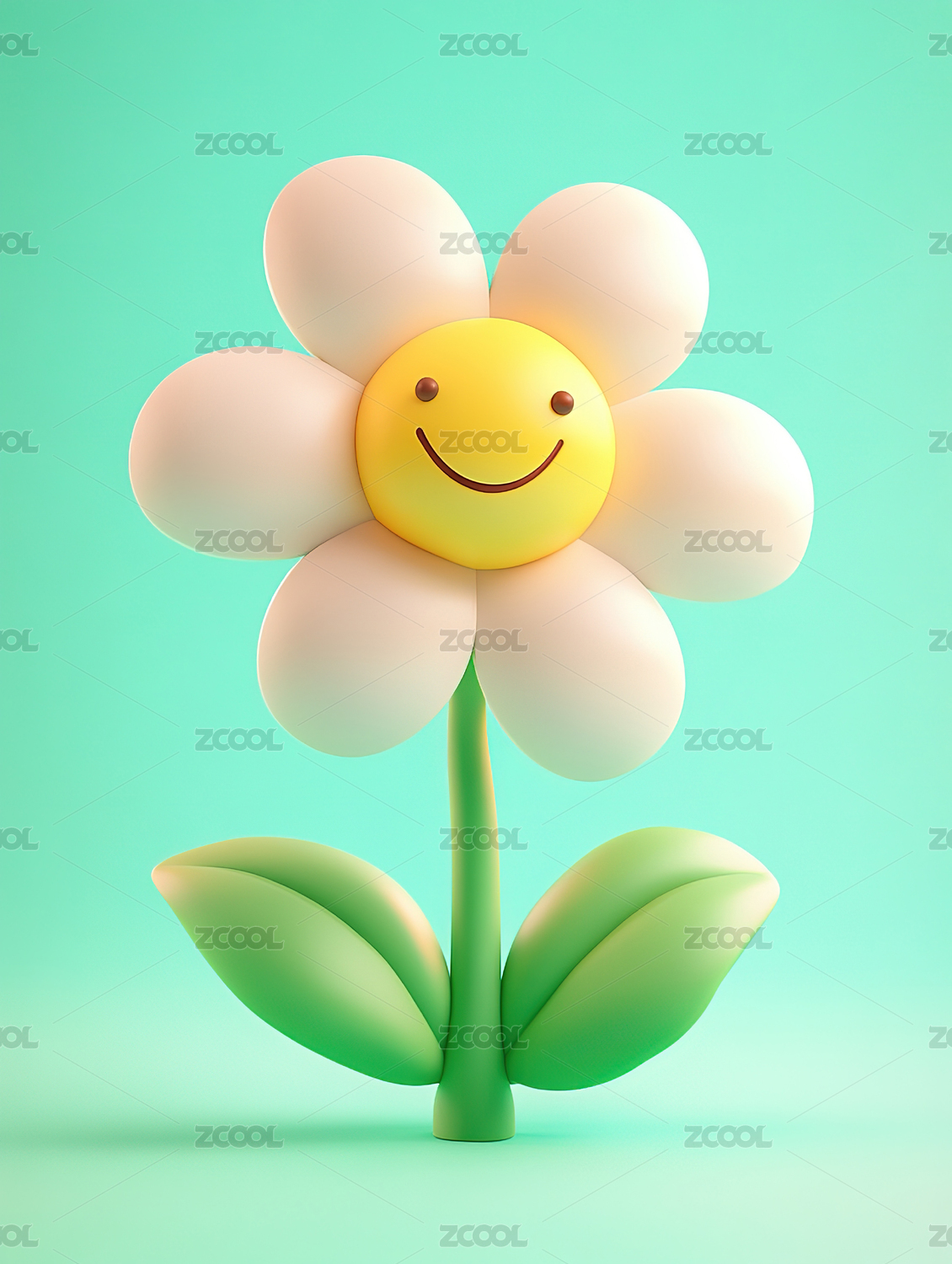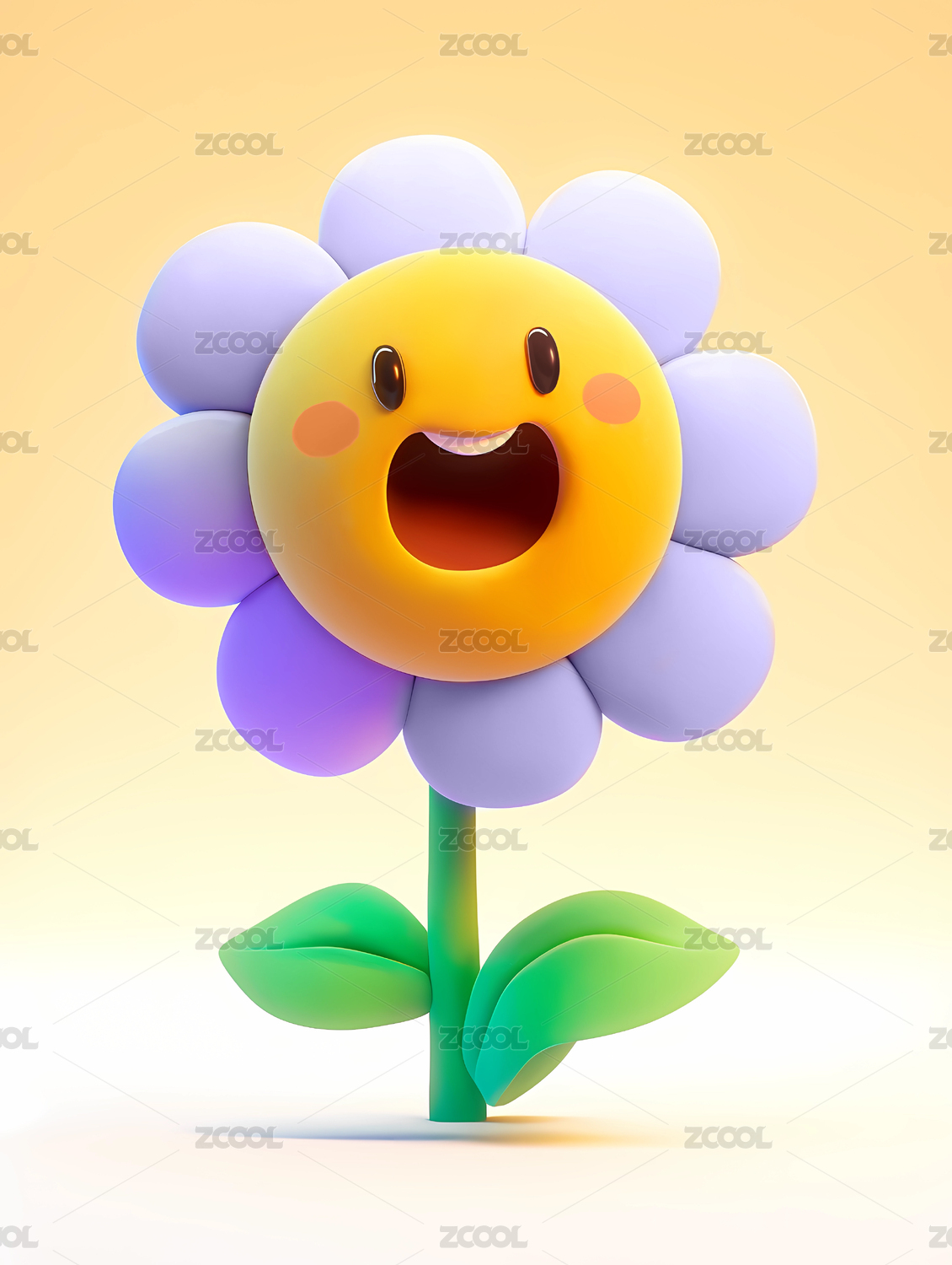 3d卡通可爱的拟人表情开心笑容的花