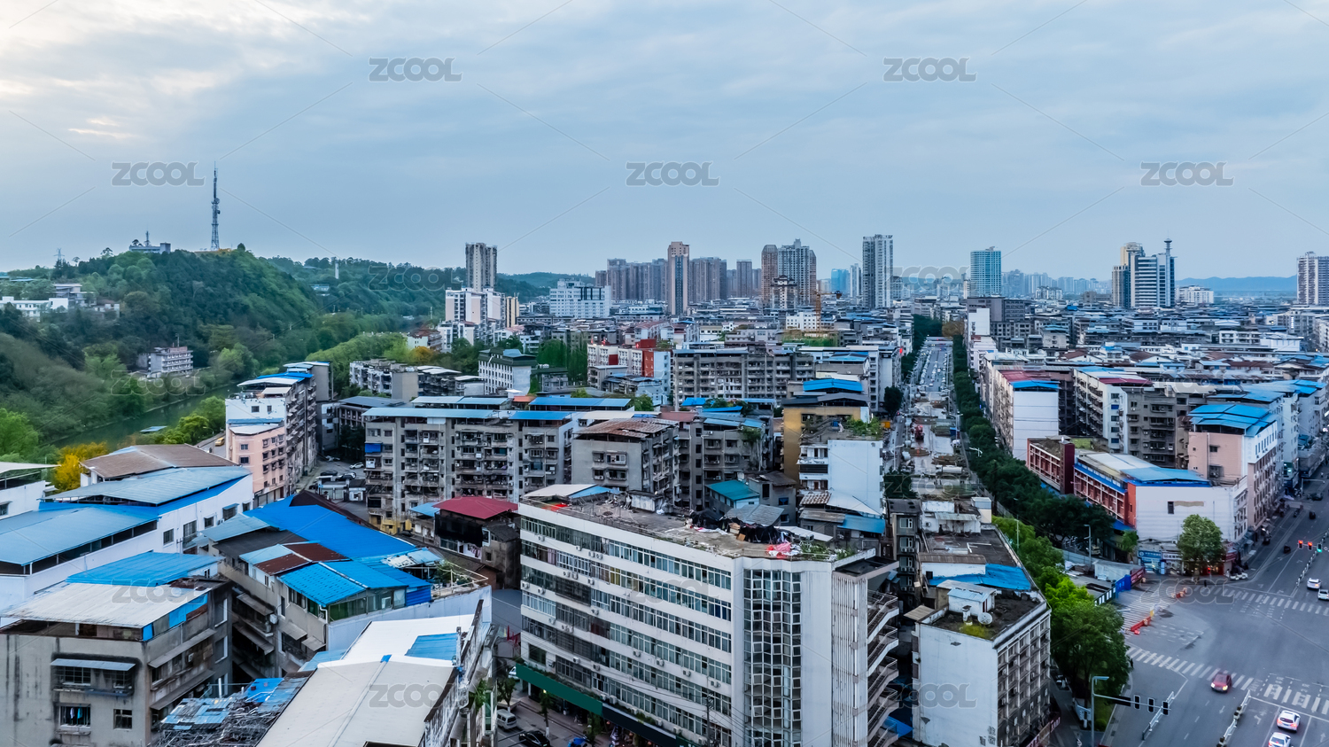 中国四川省遂宁市涪江西老城区高楼大厦建筑