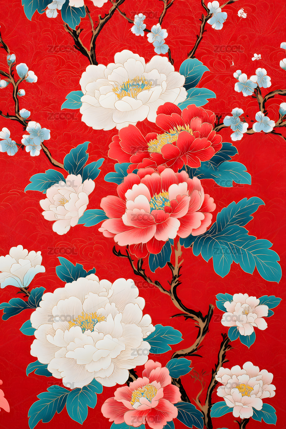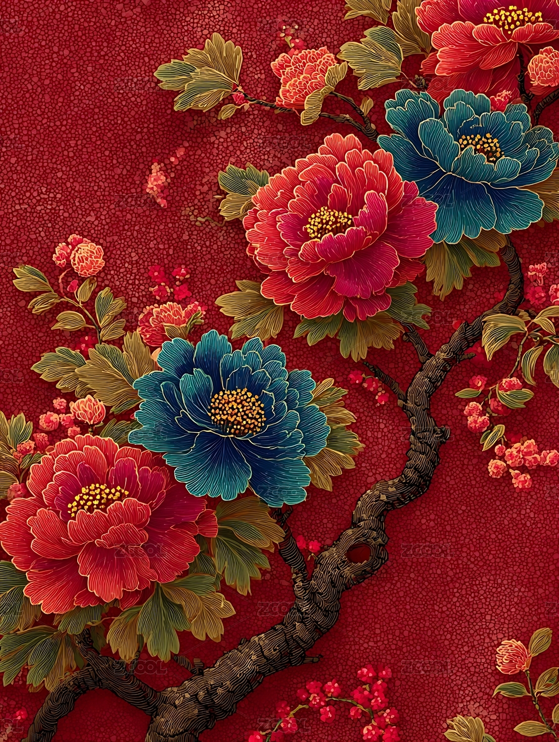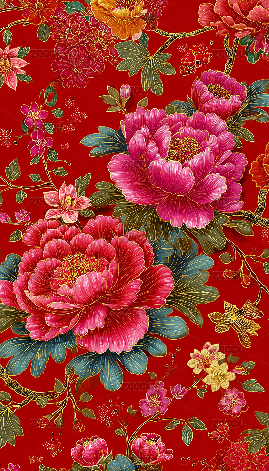 绚丽牡丹花卉绽放,中国风花团锦簇