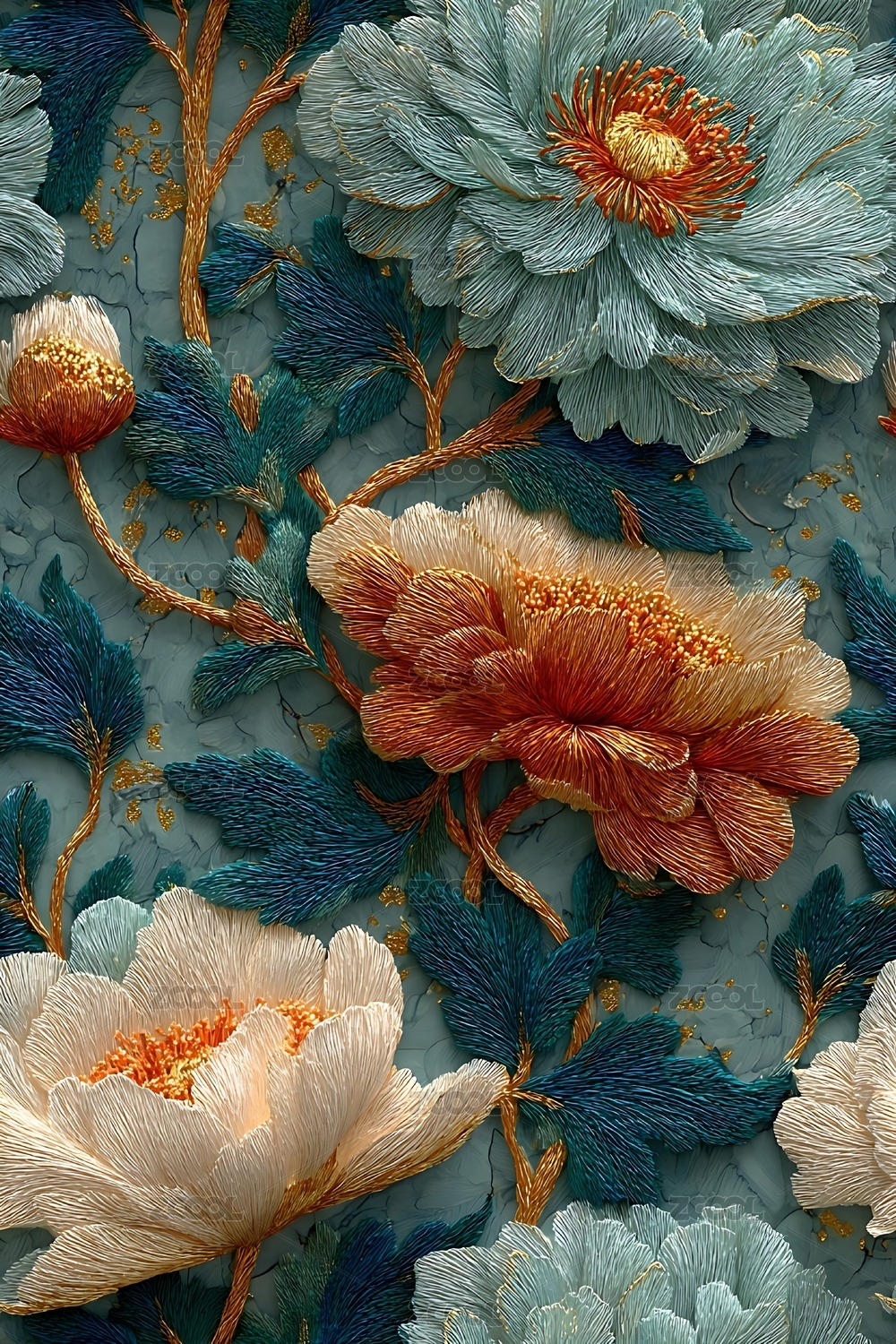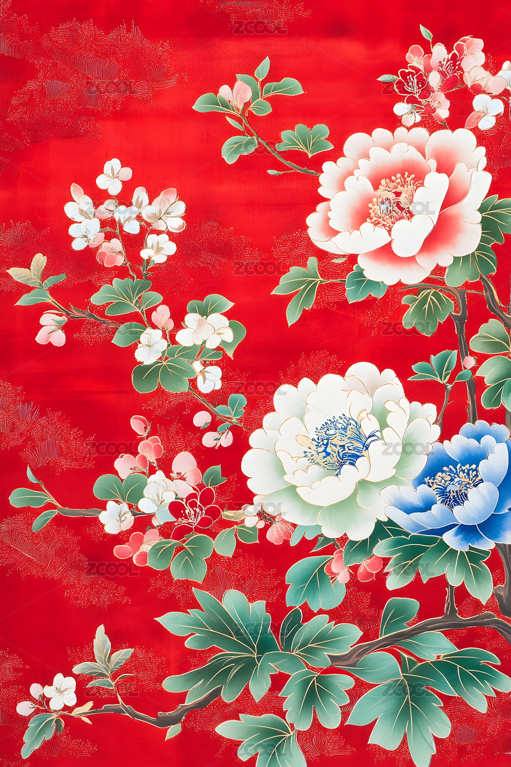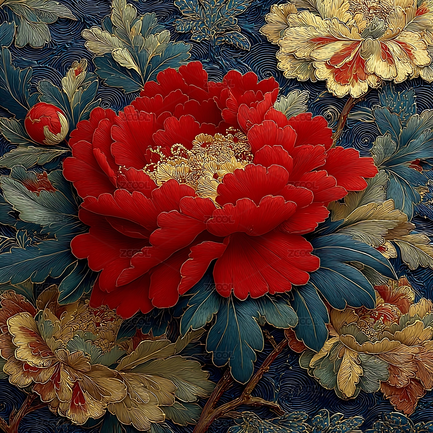 绚丽牡丹花卉绽放,中国风花团锦簇