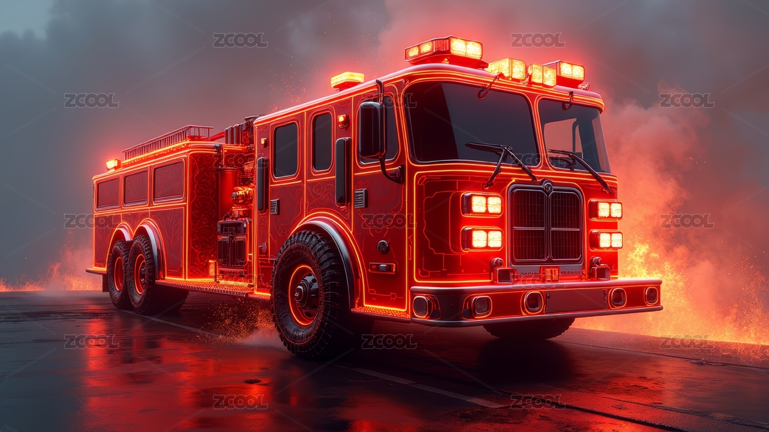 机械,场景,设计,红色,消防车,车辆,工业,运输,户外,阳光