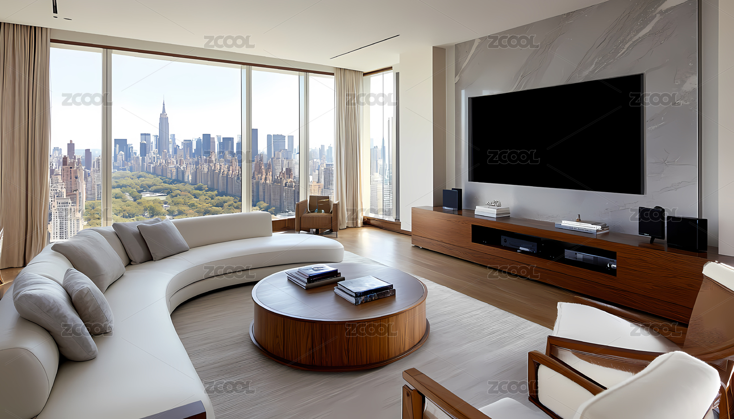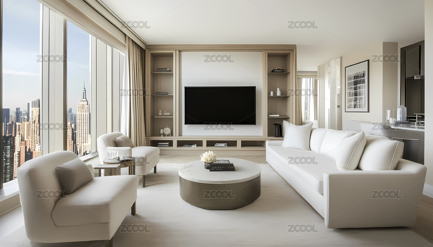 现代米白色城市景观客厅