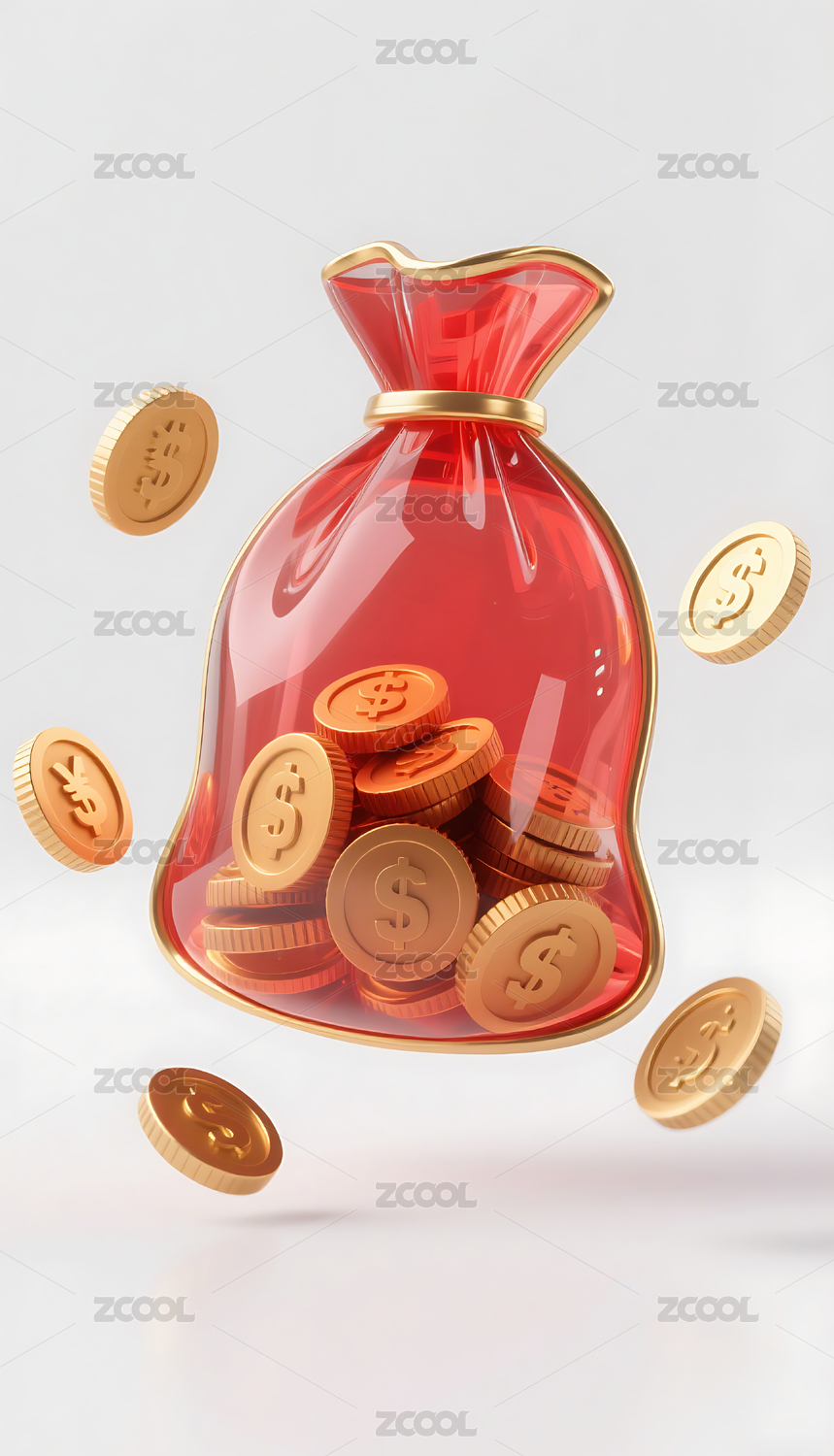 3D,透明,钱袋,金币,模型,电商,蓝色