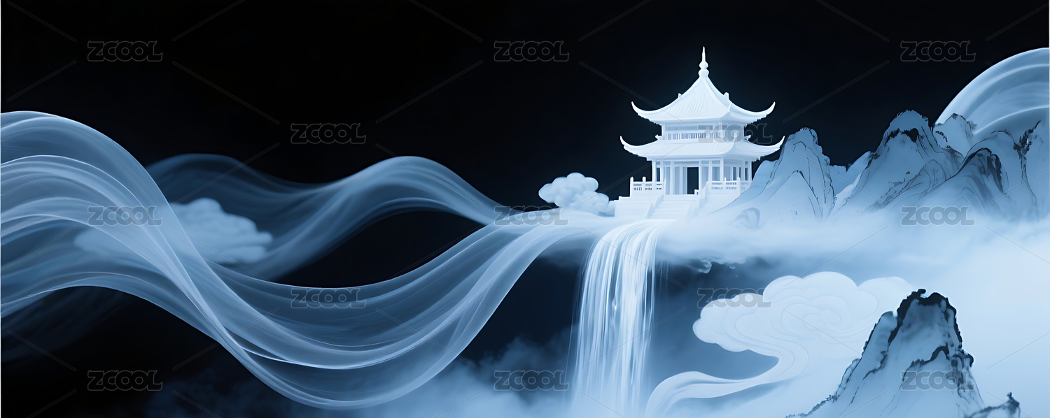 烟雾,黑色背景,飘渺,建筑,山水,艺术