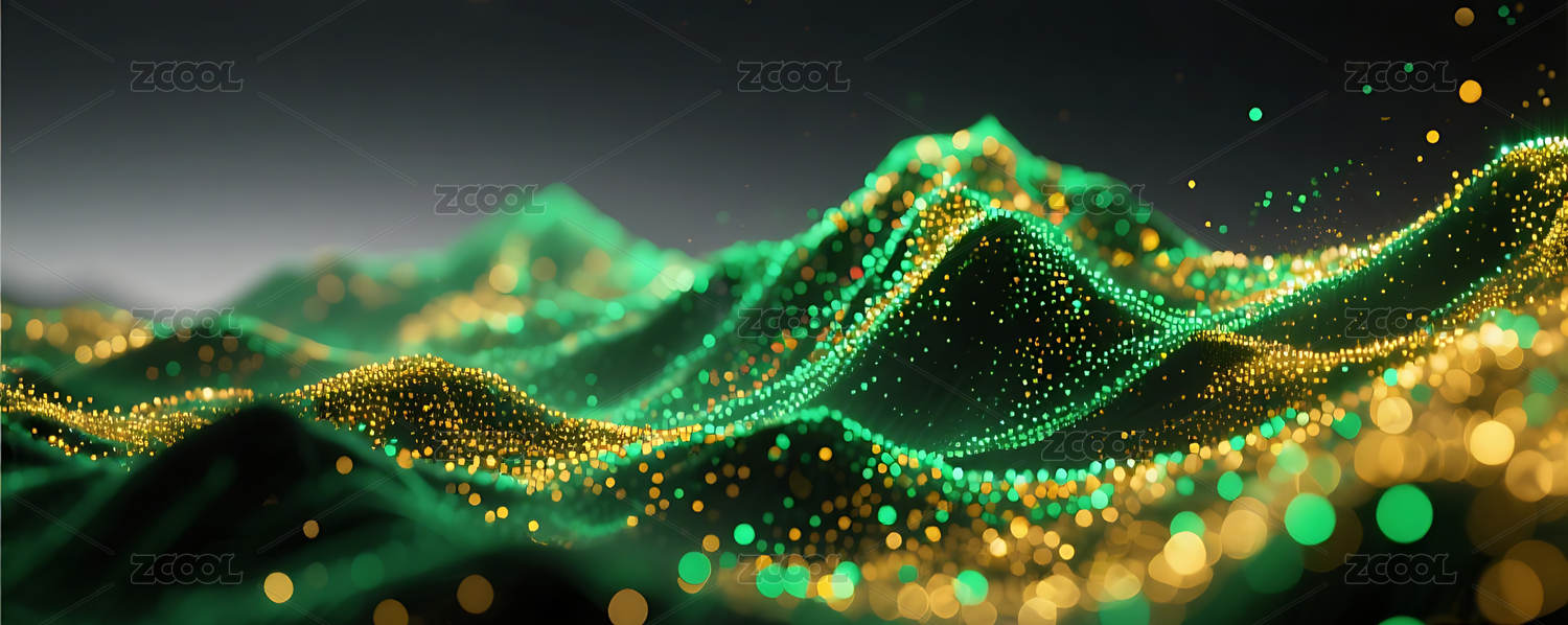 金色,粒子,颗粒,背景,黑色背景,山峰,山脉,绿色