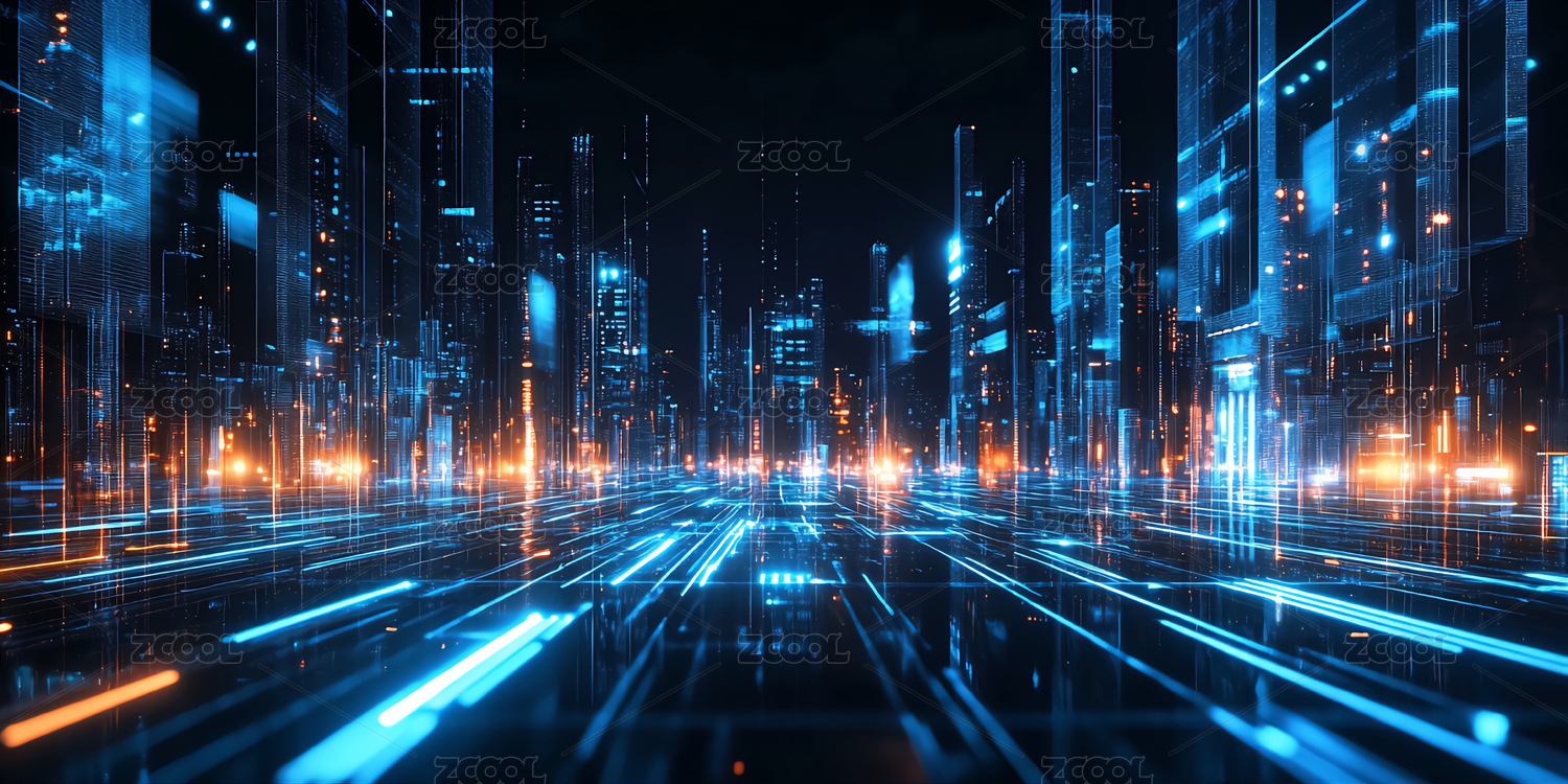 科技,摩天大厦,物联网,网络,数据流,传输,人工智能,城市,天际线,建筑