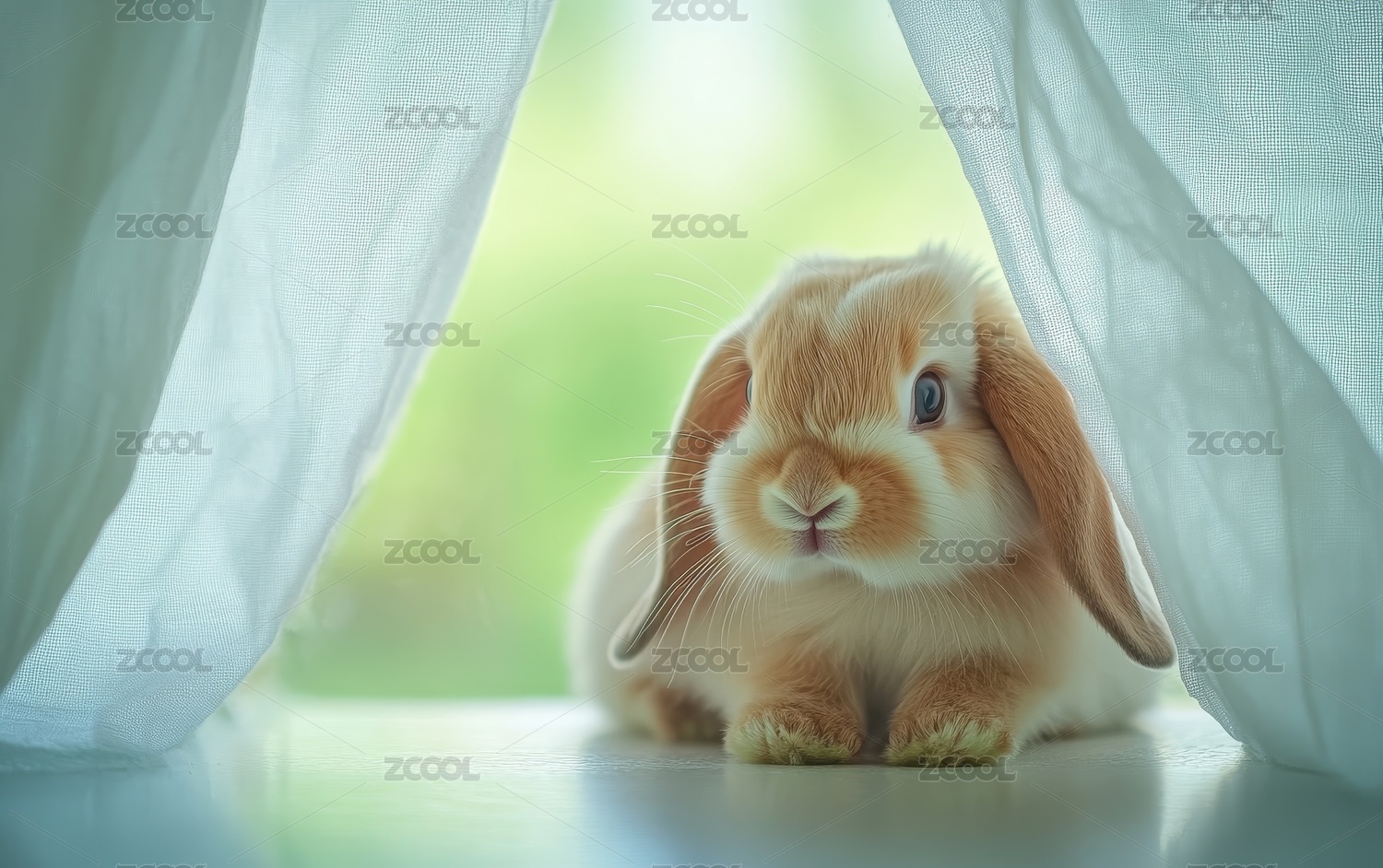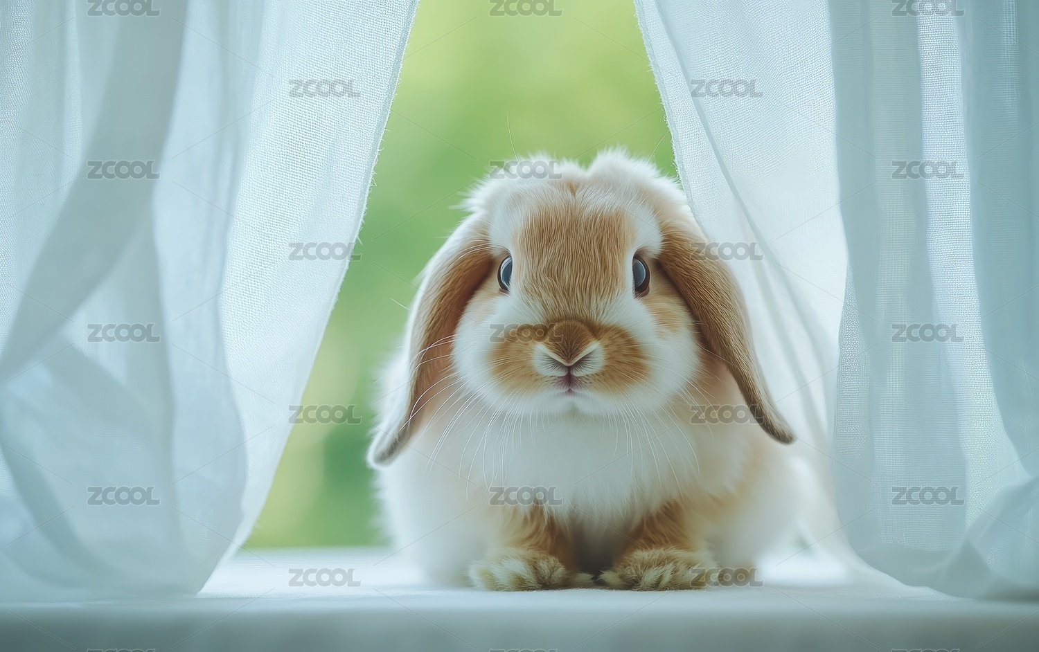 垂耳兔,兔子,可爱,绿色,背景,动物,毛茸茸,萌宠,自然,温馨
