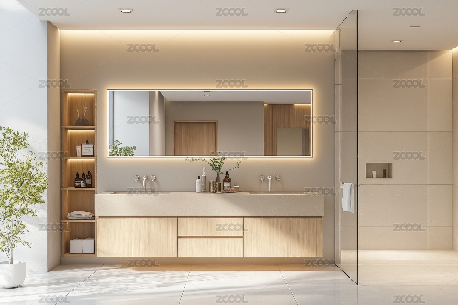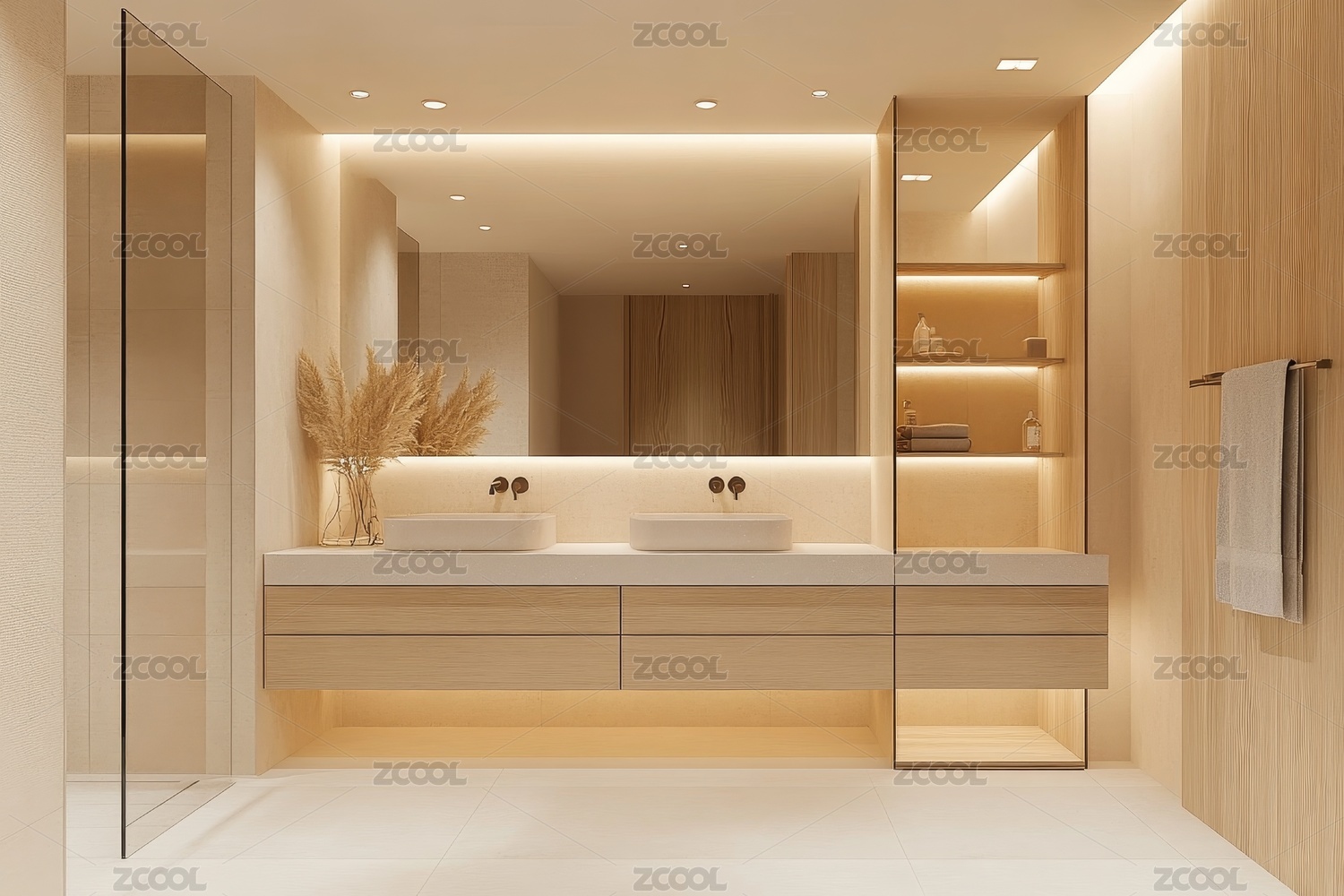 现代,浅木色,双洗手台,卫浴,空间,设计,简约,时尚,风格,木质