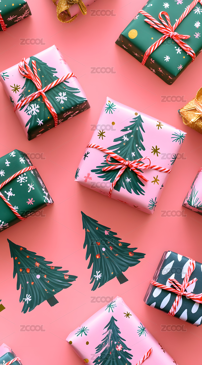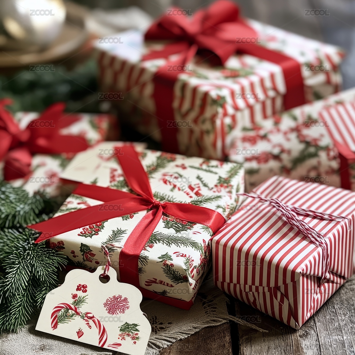 圣诞,礼物,包装,红白,条纹,花纹,礼品盒,礼盒,包装纸,丝带