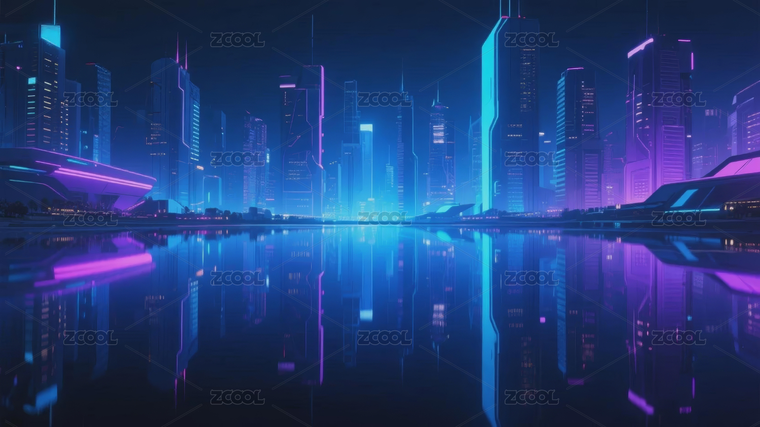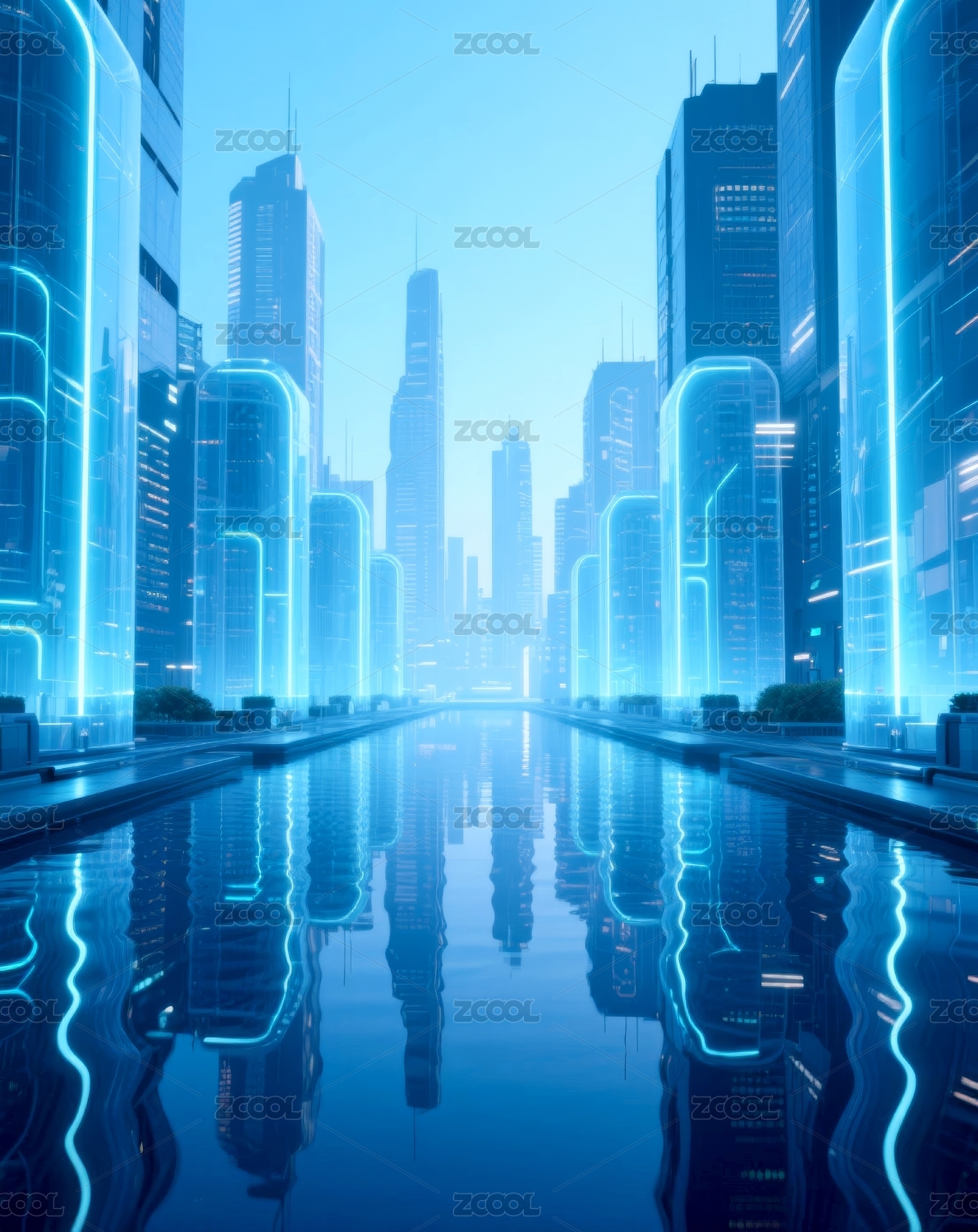 科技, 现代, 紫色, 灯光, 未来, 倒影, 光影, 蓝色, 建筑,城市