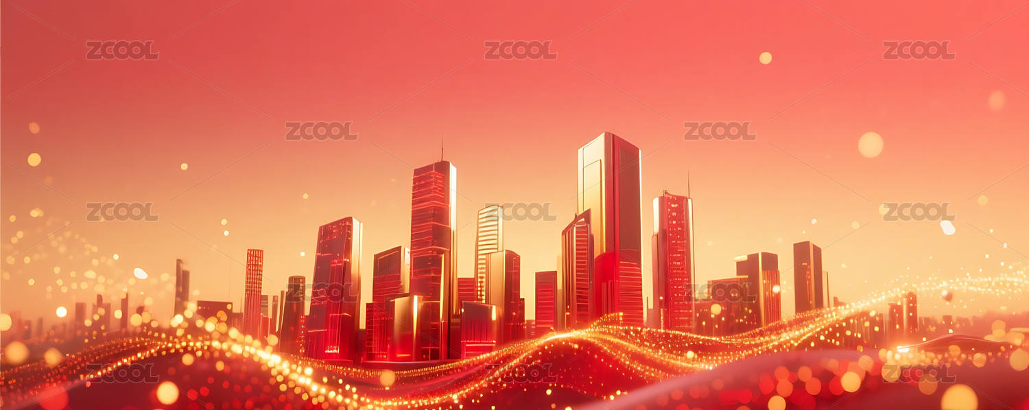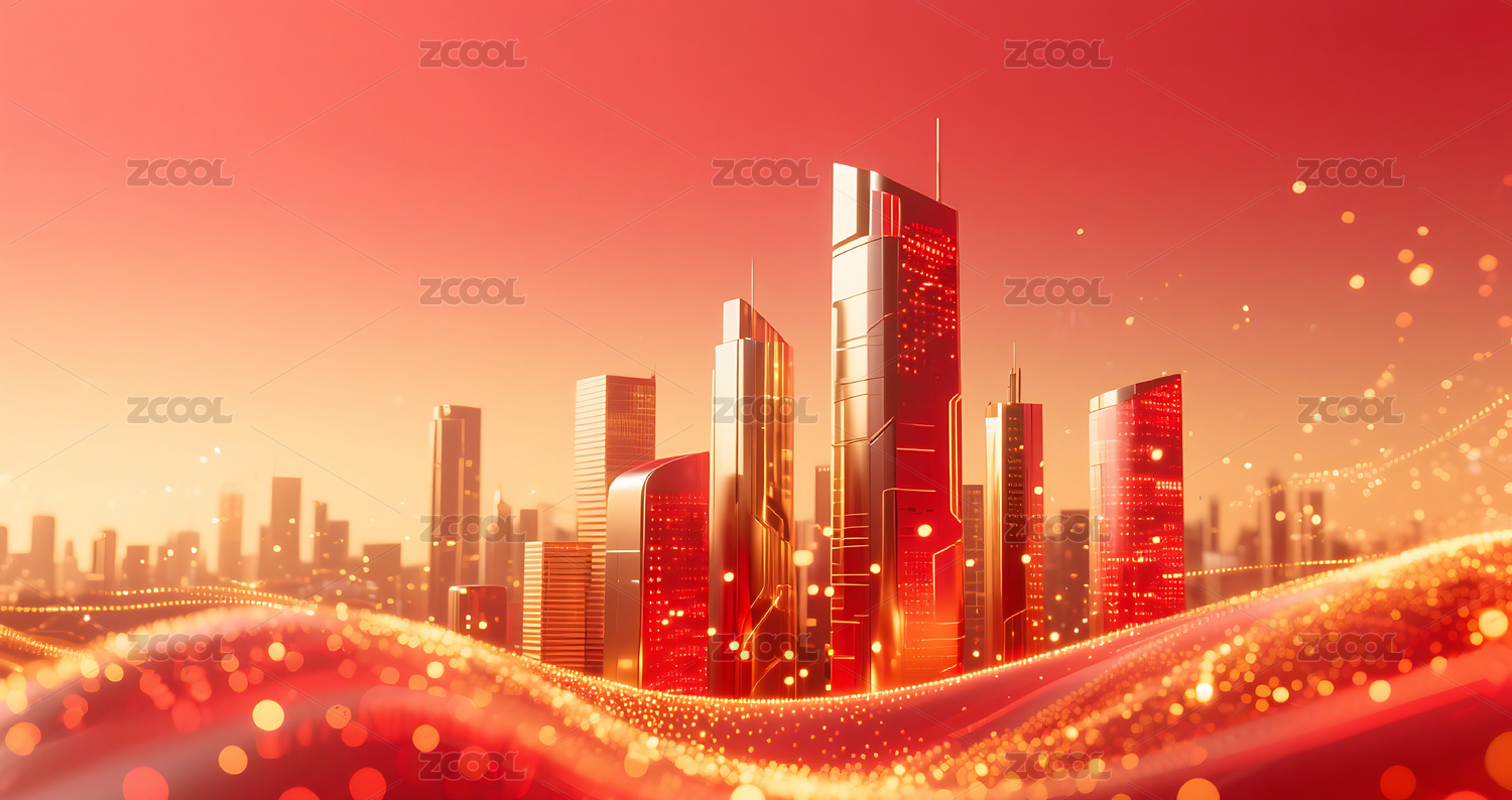 红金色流动粒子金属城市建筑背景