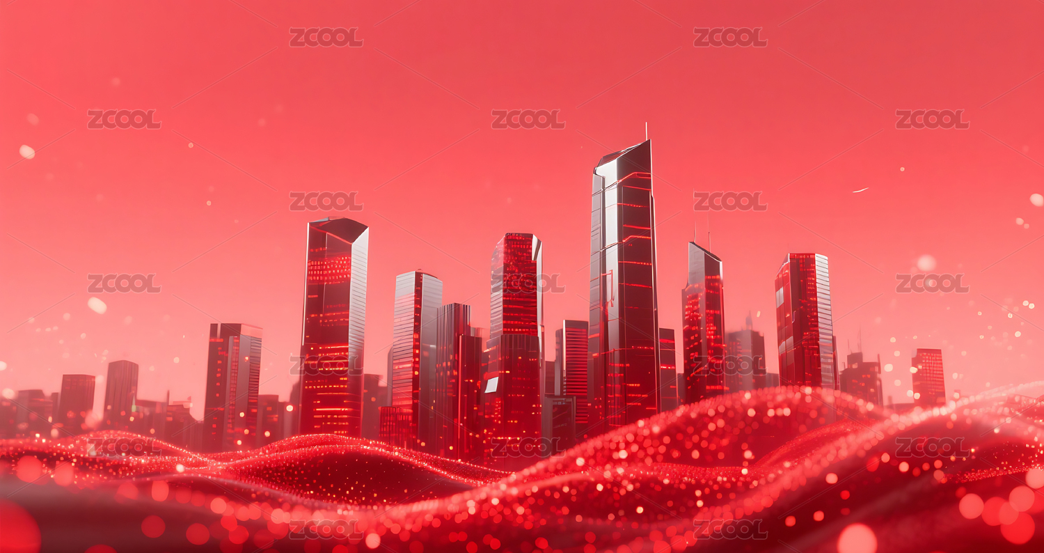 红色流动粒子金属城市建筑背景