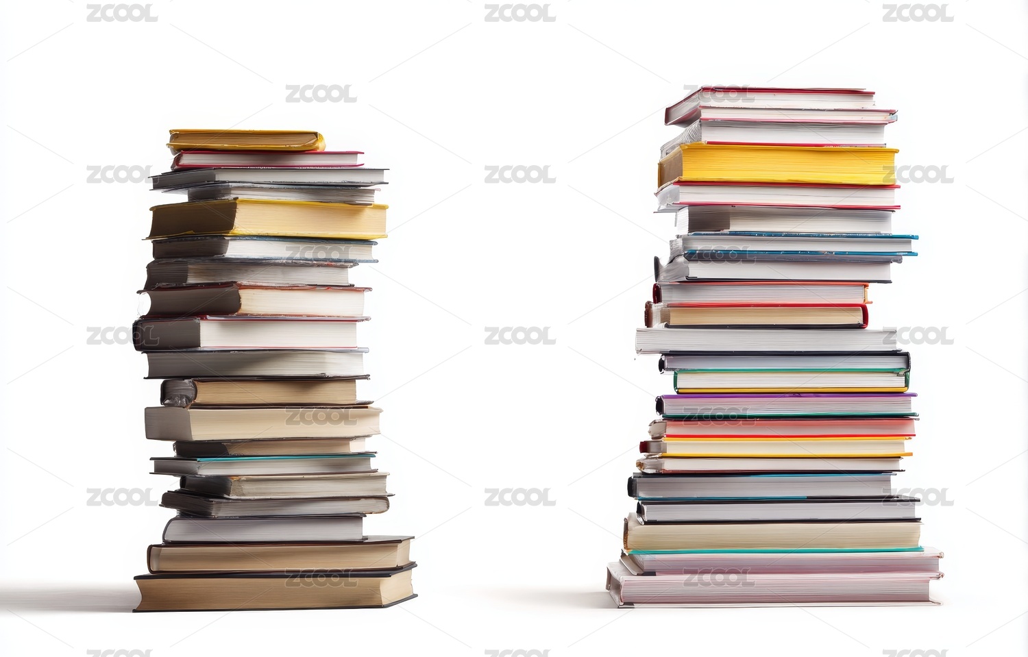 两堆,高耸,书籍,特写,对比,知识,学习,办公,用品,摆设