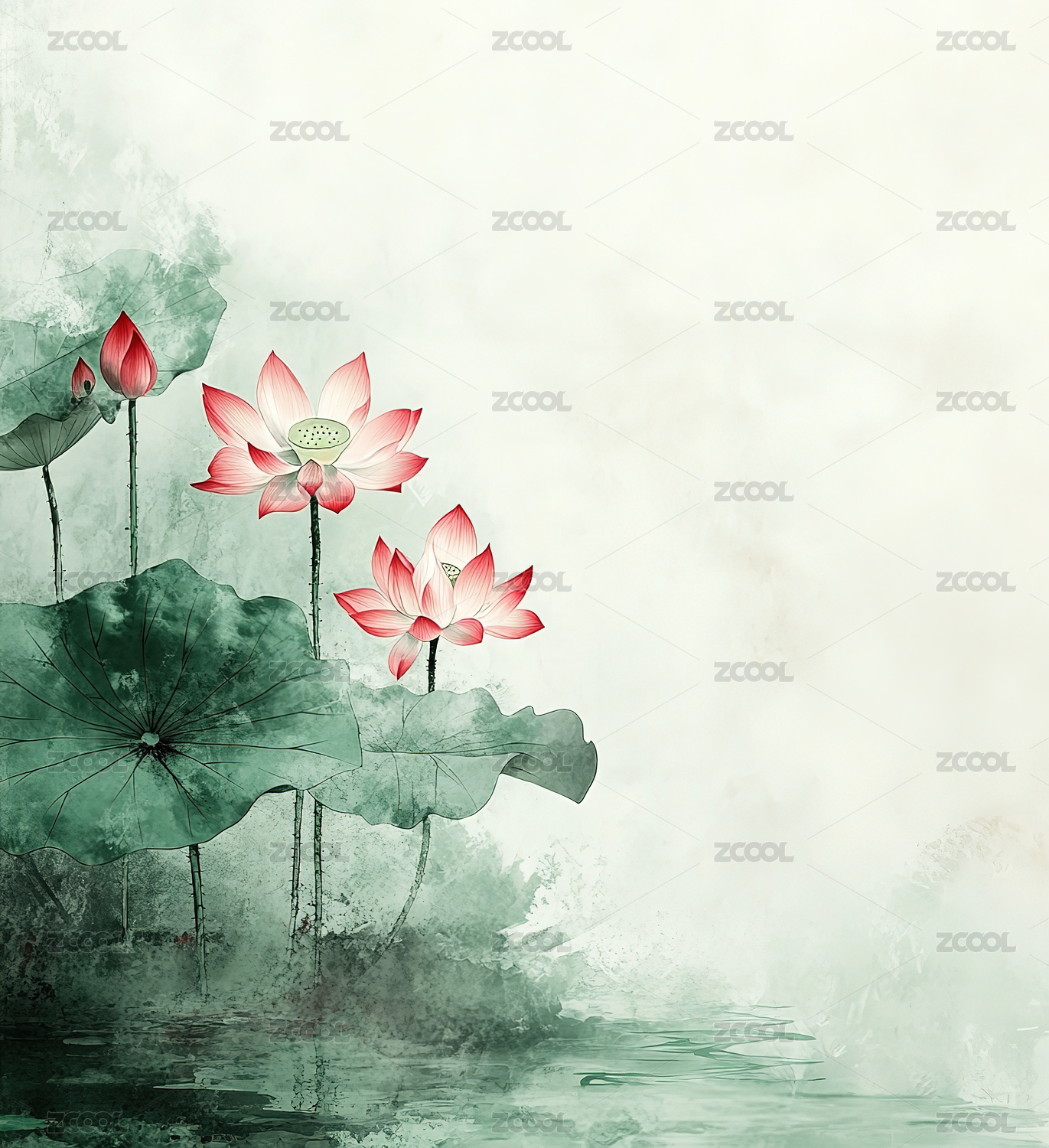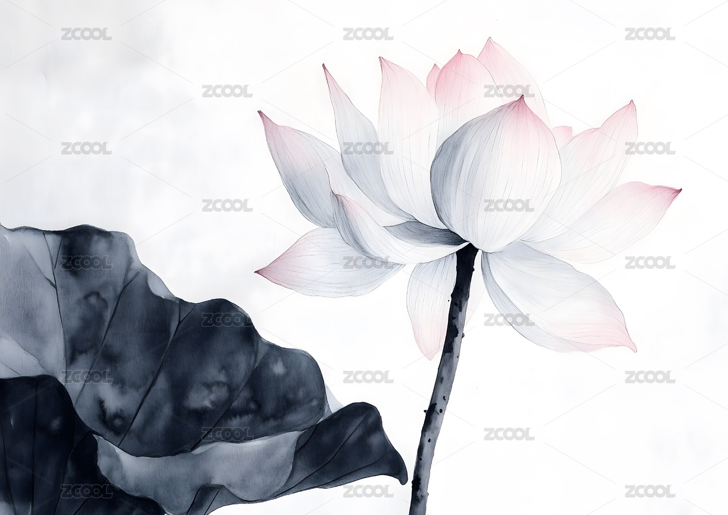 水墨风的荷花与荷叶