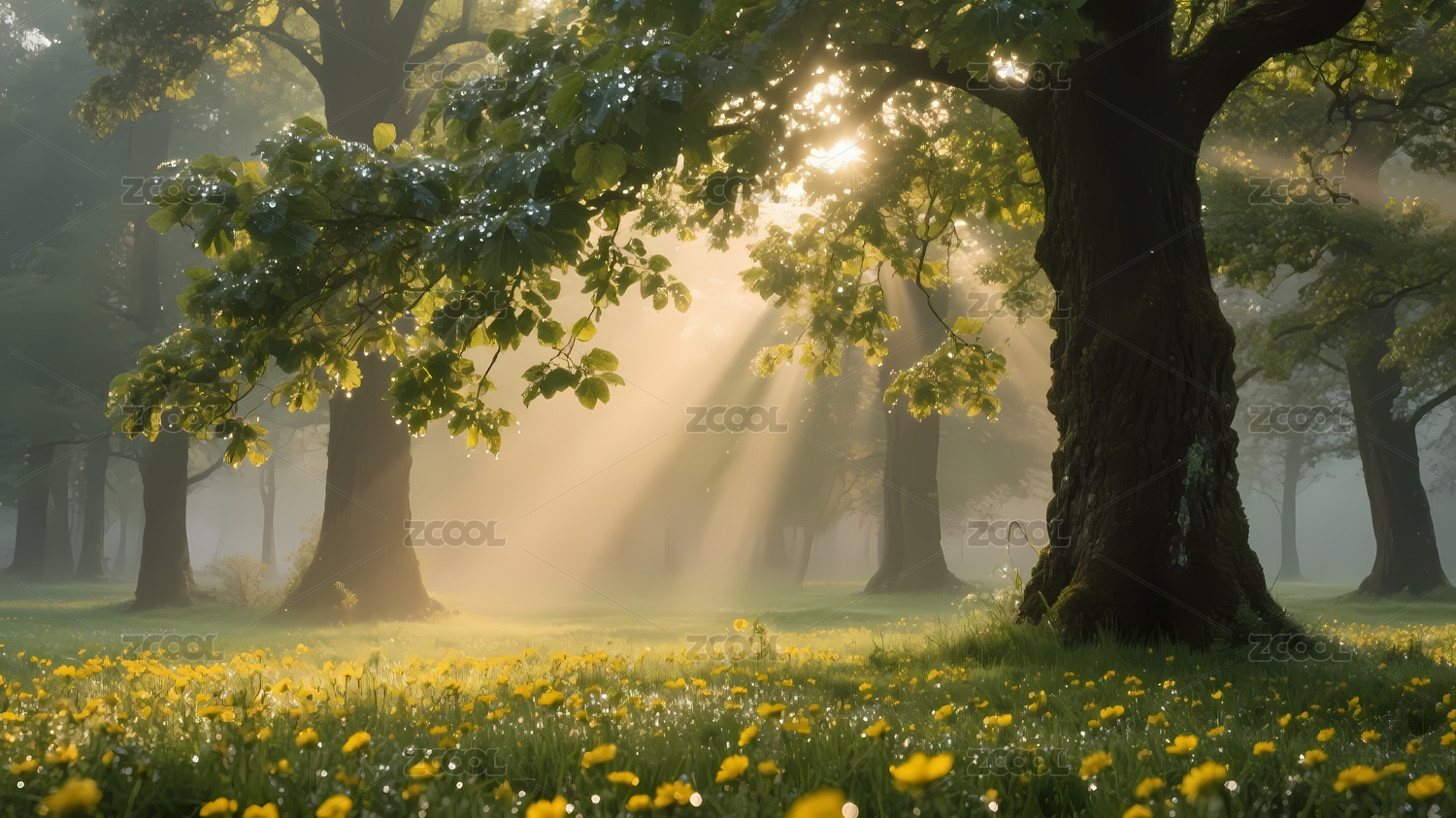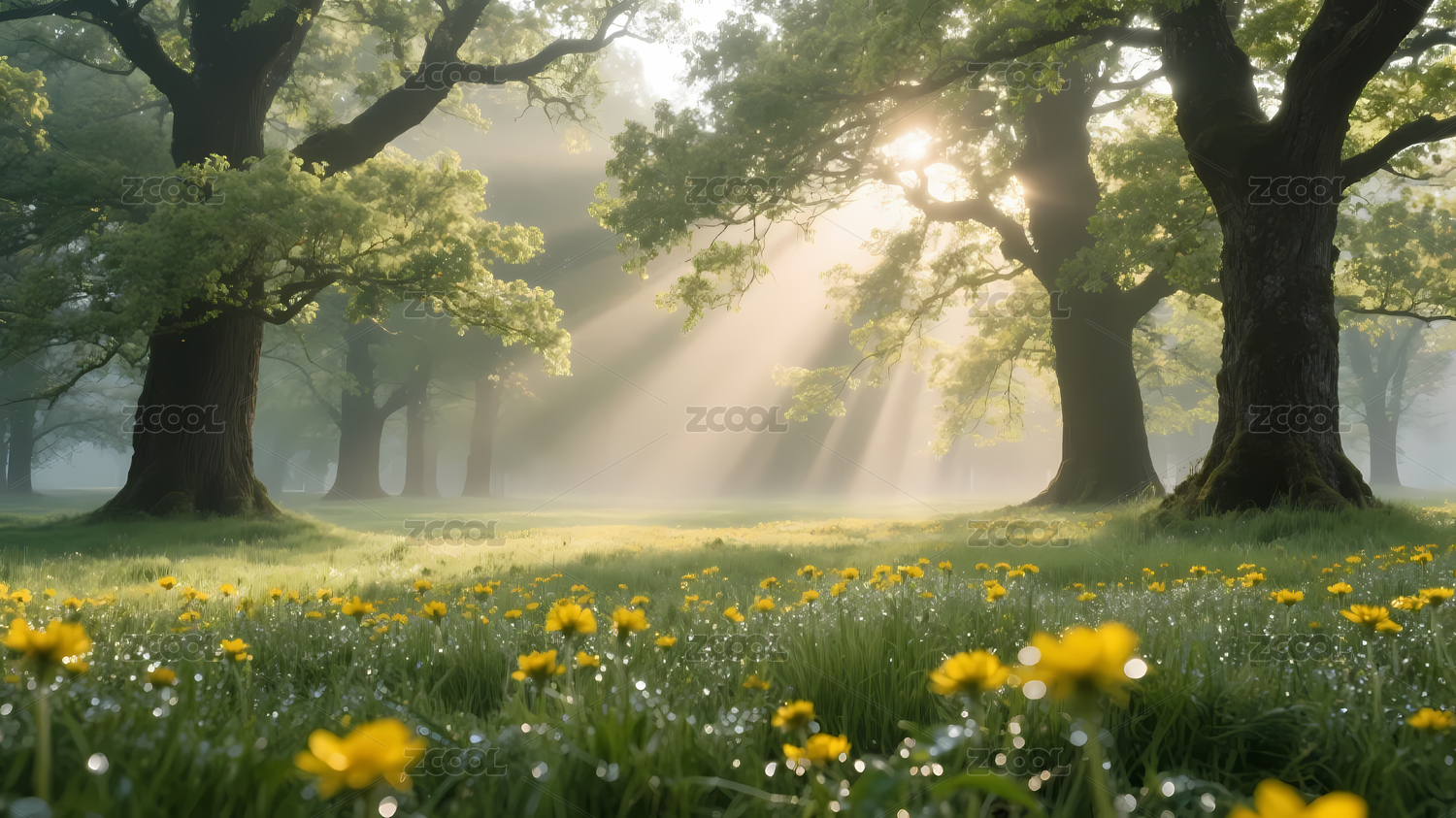 阳光草地树木光束