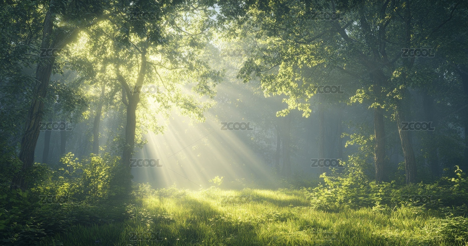 绿色树林阳光薄雾