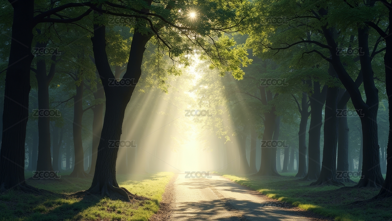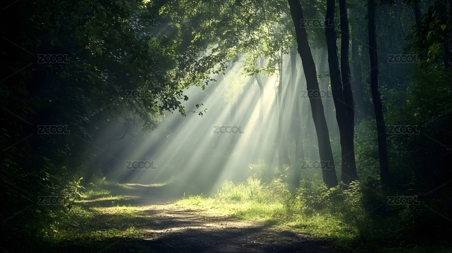 林间光束下的幽径景象