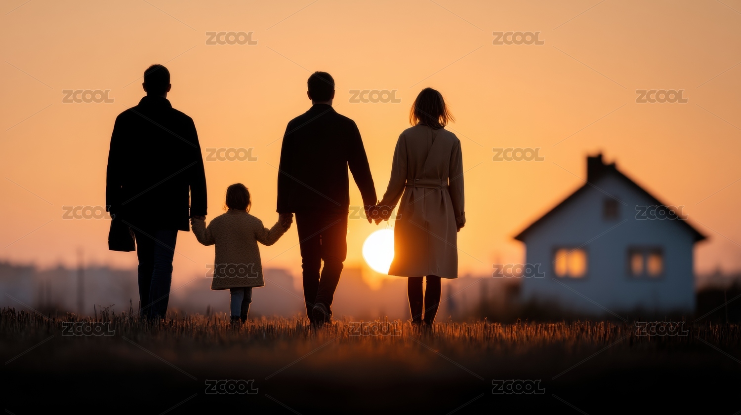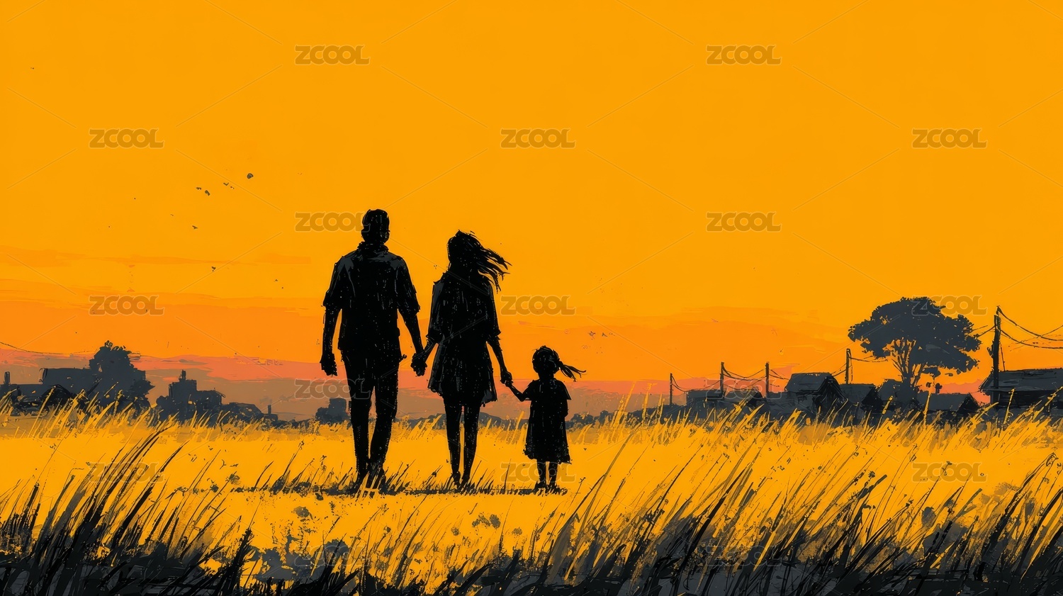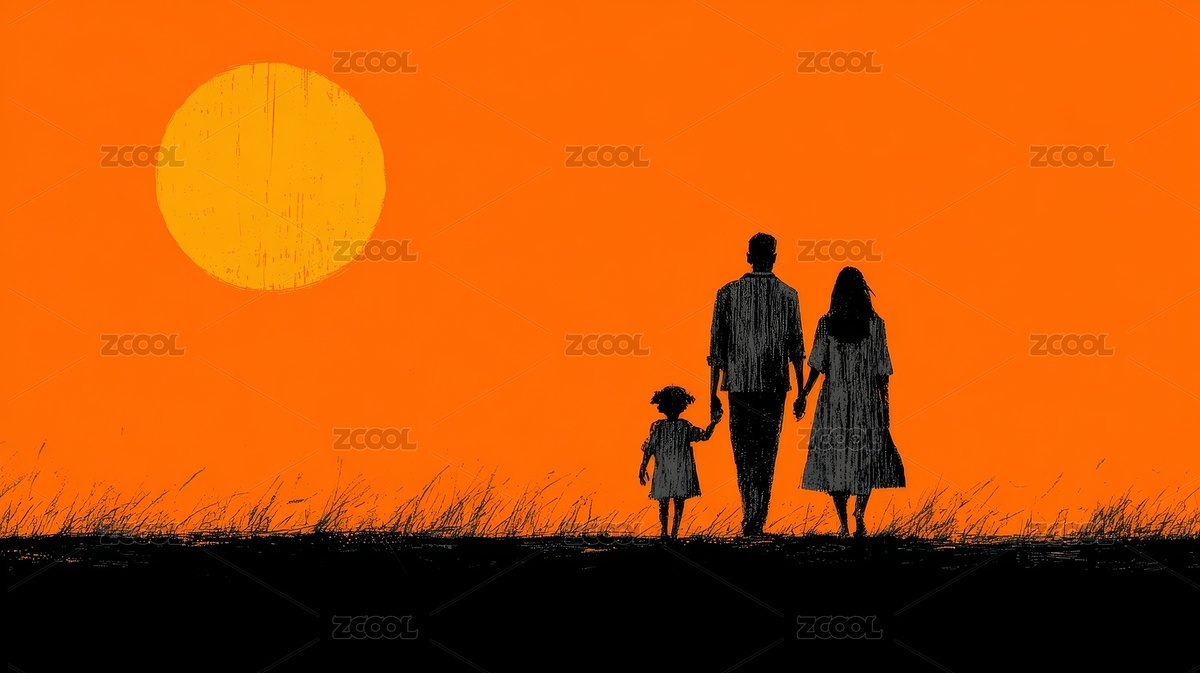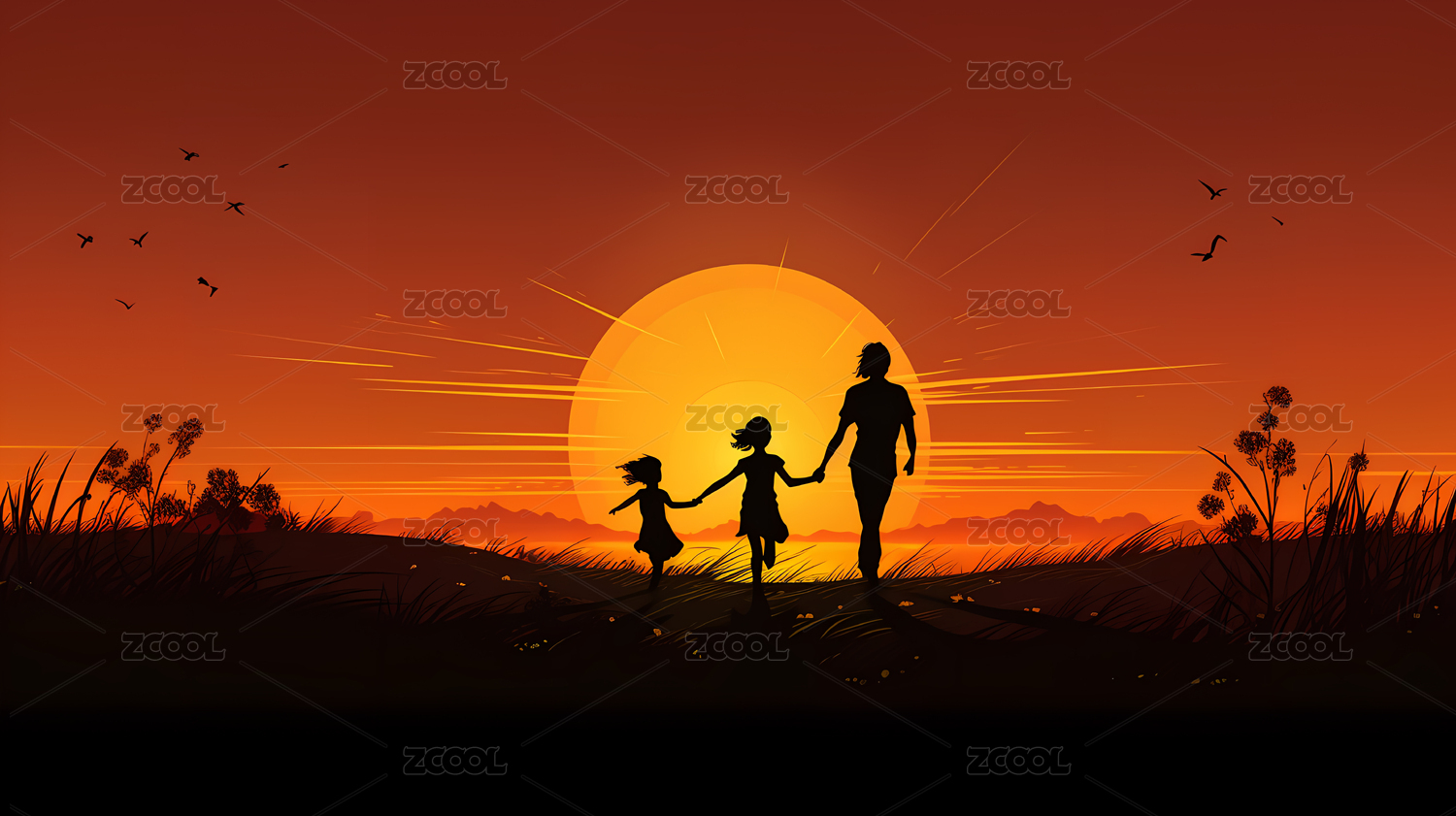 家庭,剪影,夕阳,牵手,矢量,标志,图标,设计,扁平,色彩