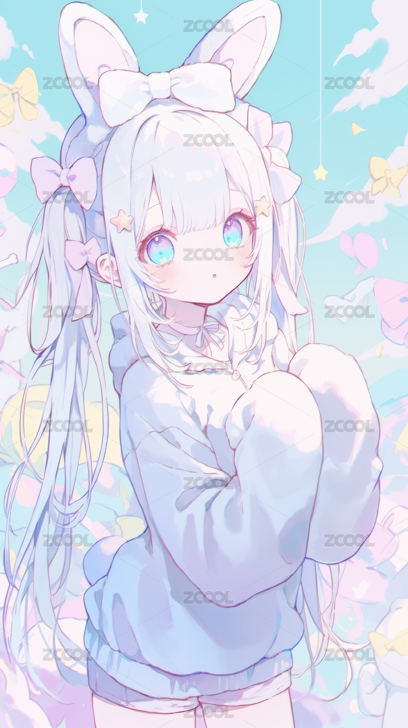 可爱的动漫女孩缤纷的色彩壁纸背景