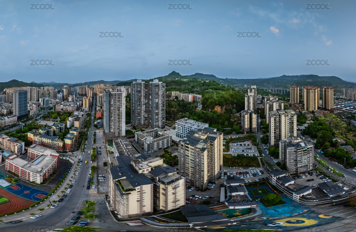 中国四川省南部县720度暮色城区高楼建筑