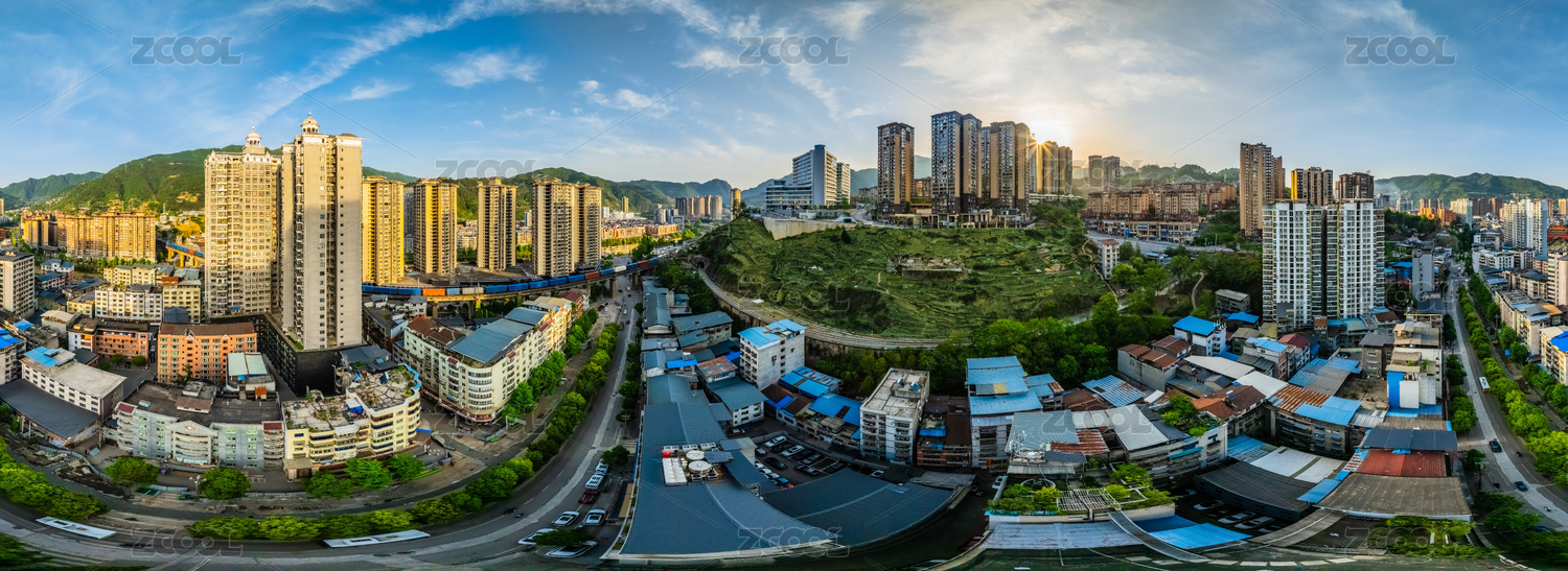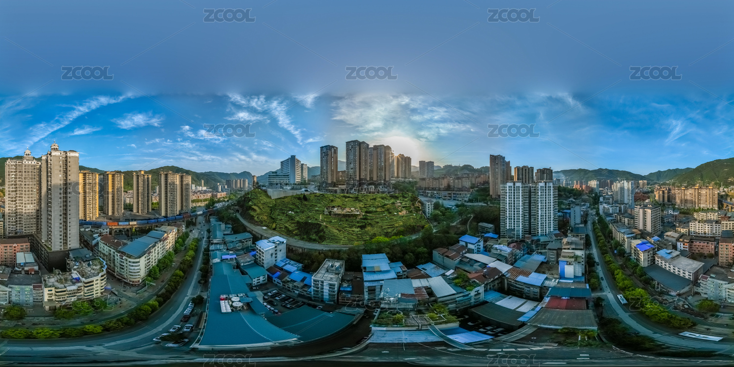中国四川省巴中市720度全景城区高楼建筑