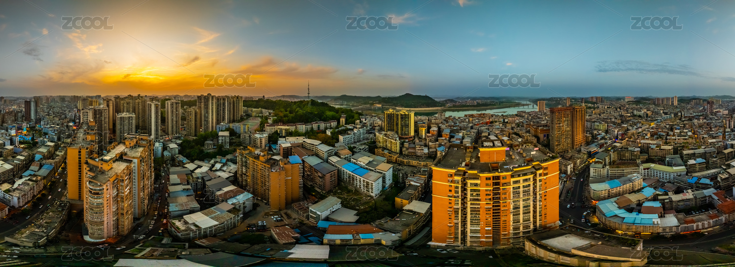 中国四川省巴中市720度全景巴河外滩高楼