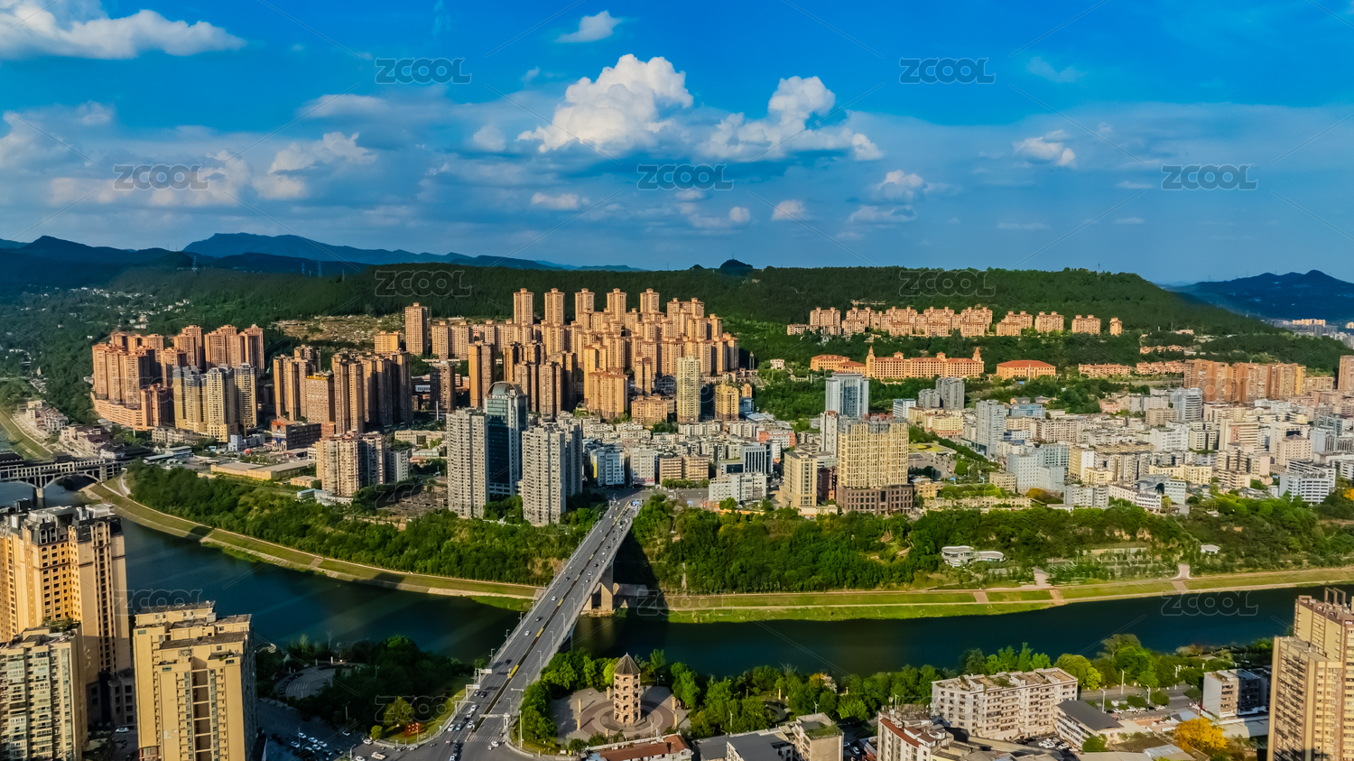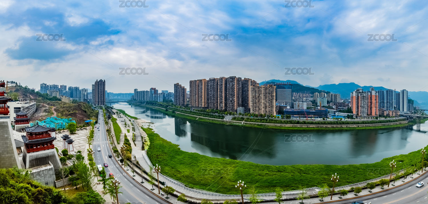 中国四川省达州市城区州河外滩高楼大厦建筑