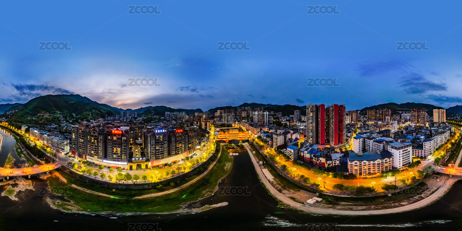 中国四川省万源市720度全景夜晚城区高楼