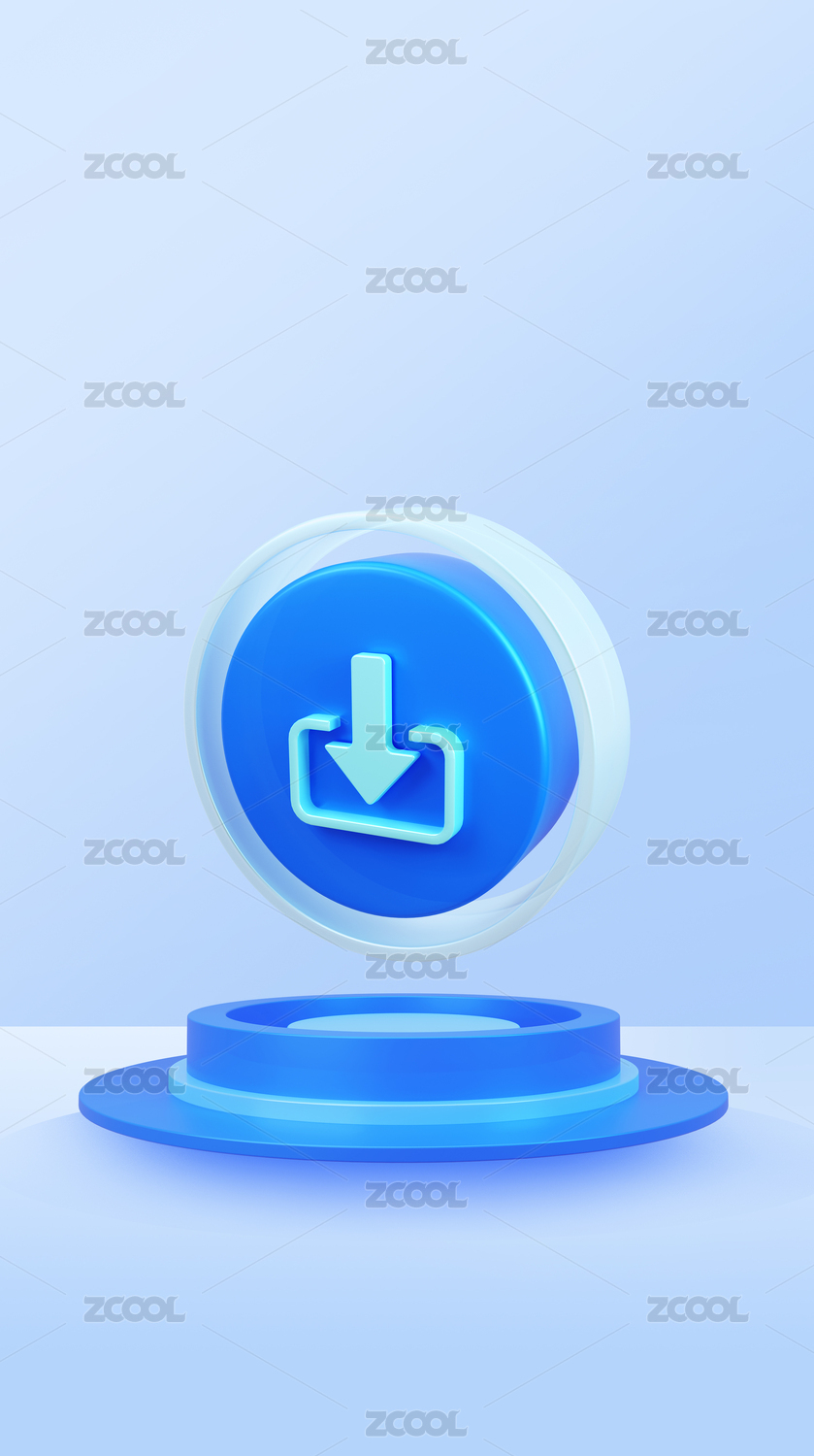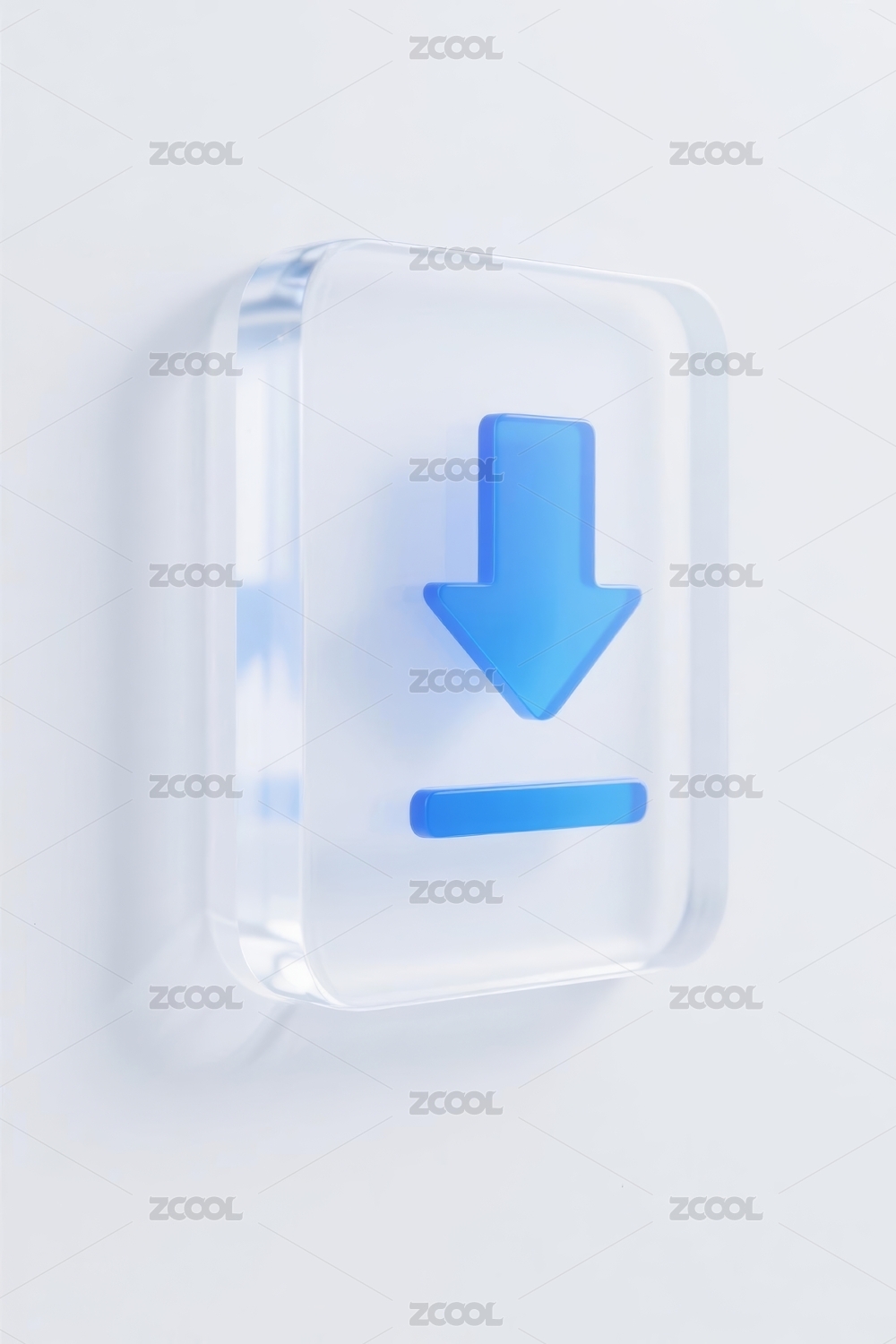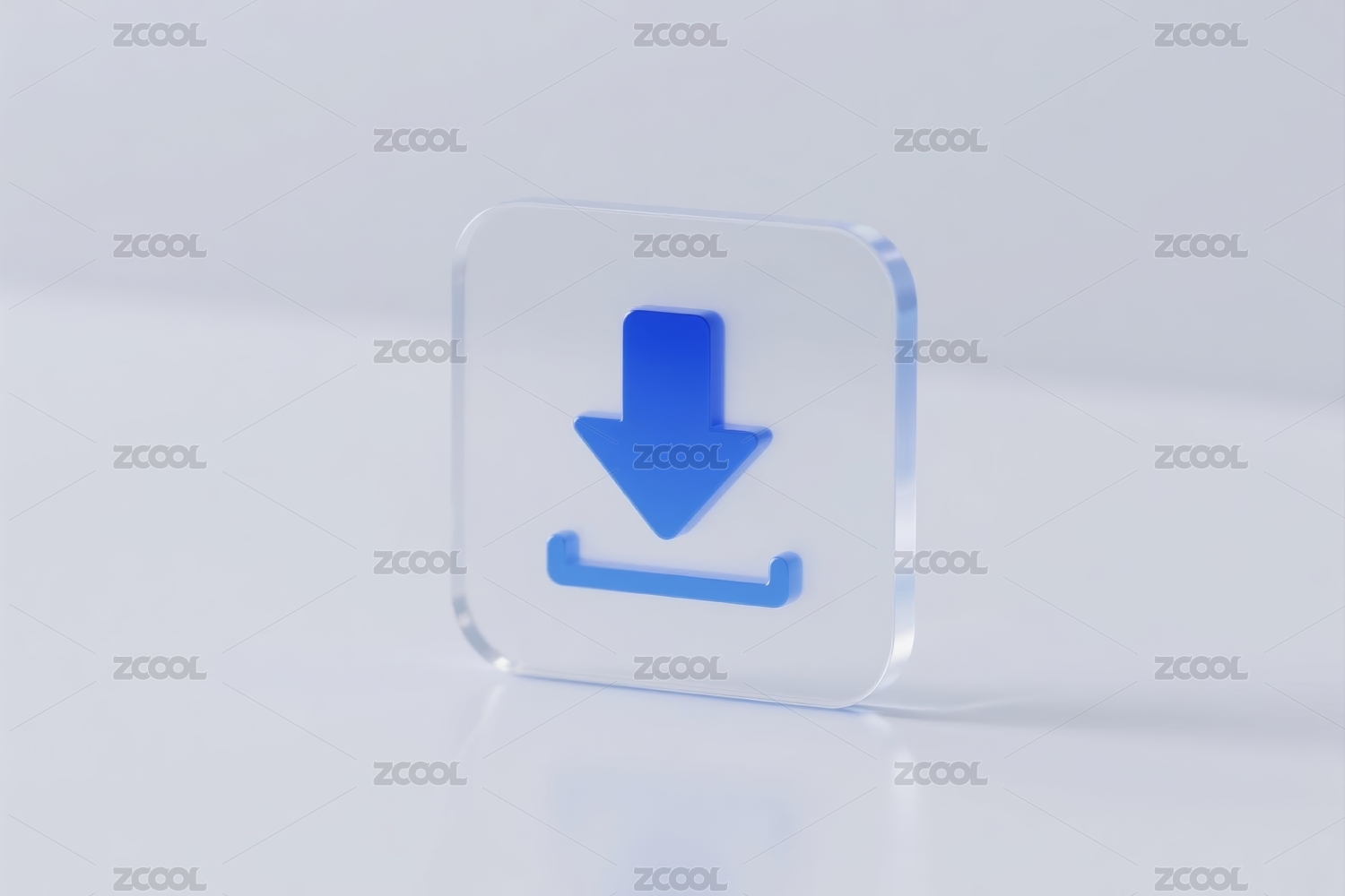 蓝白色下载本地透明磨砂玻璃B端3D图标