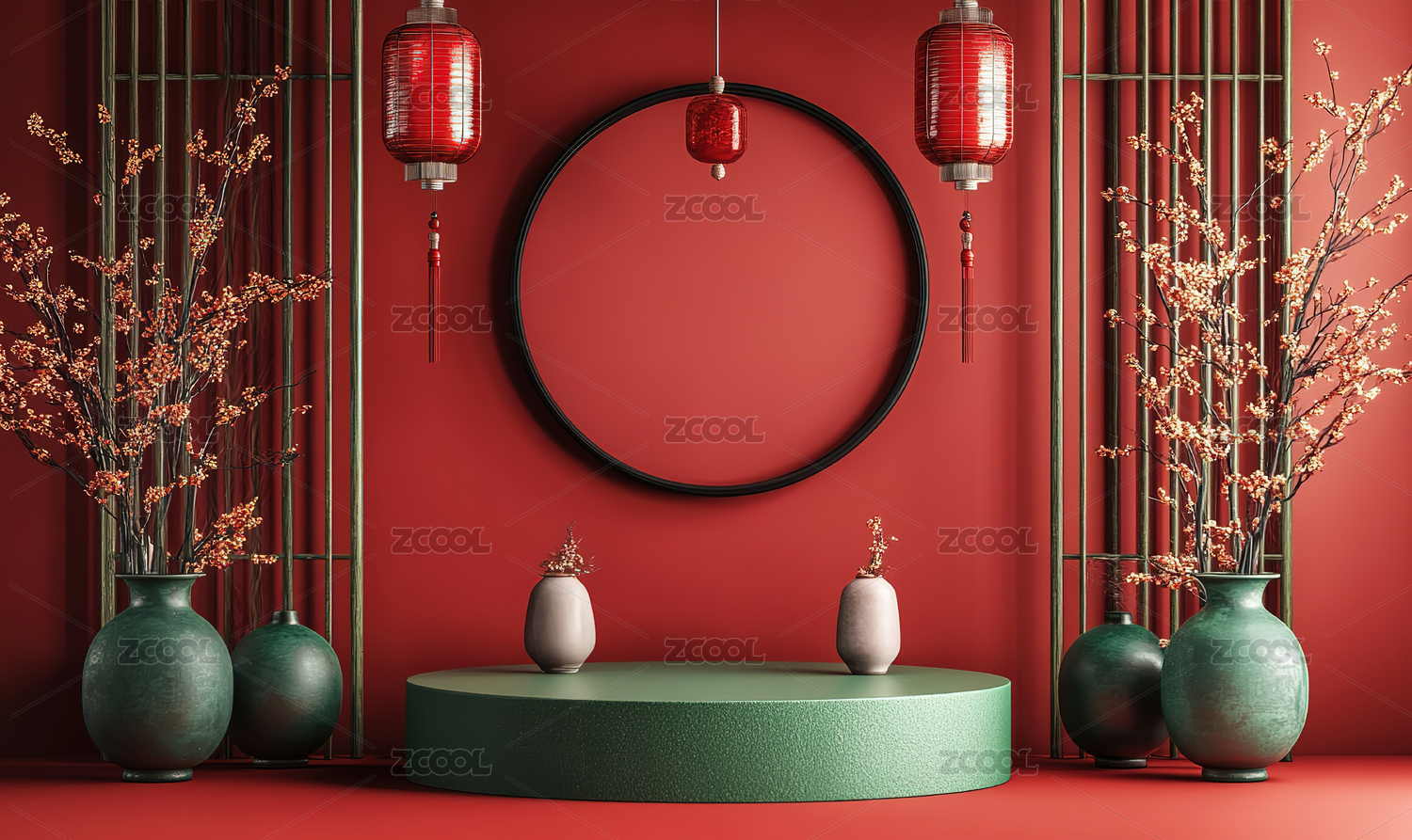 圆形展台和红灯笼