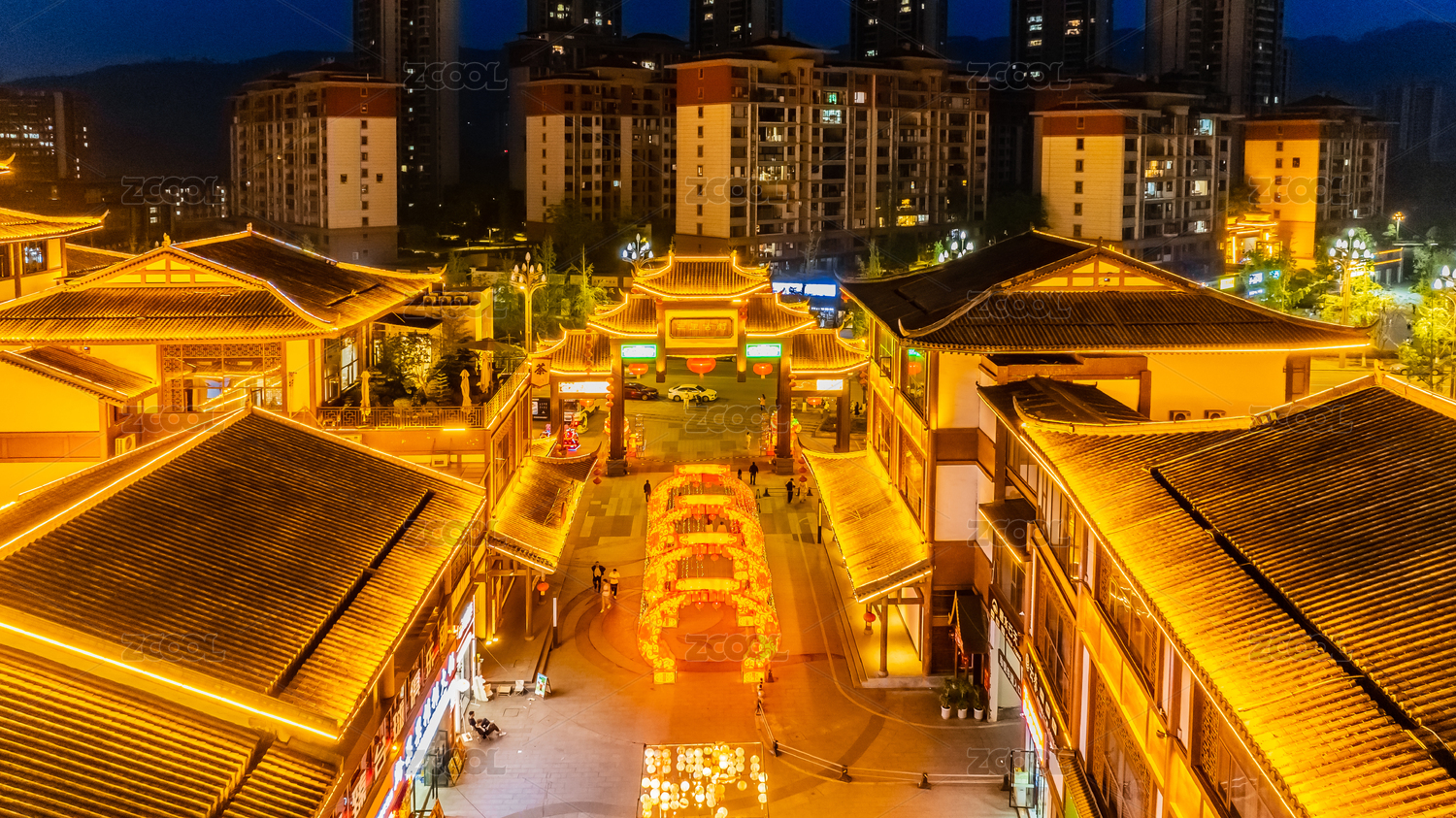 湖南怀化洪江古商城古建筑航拍夜景风光