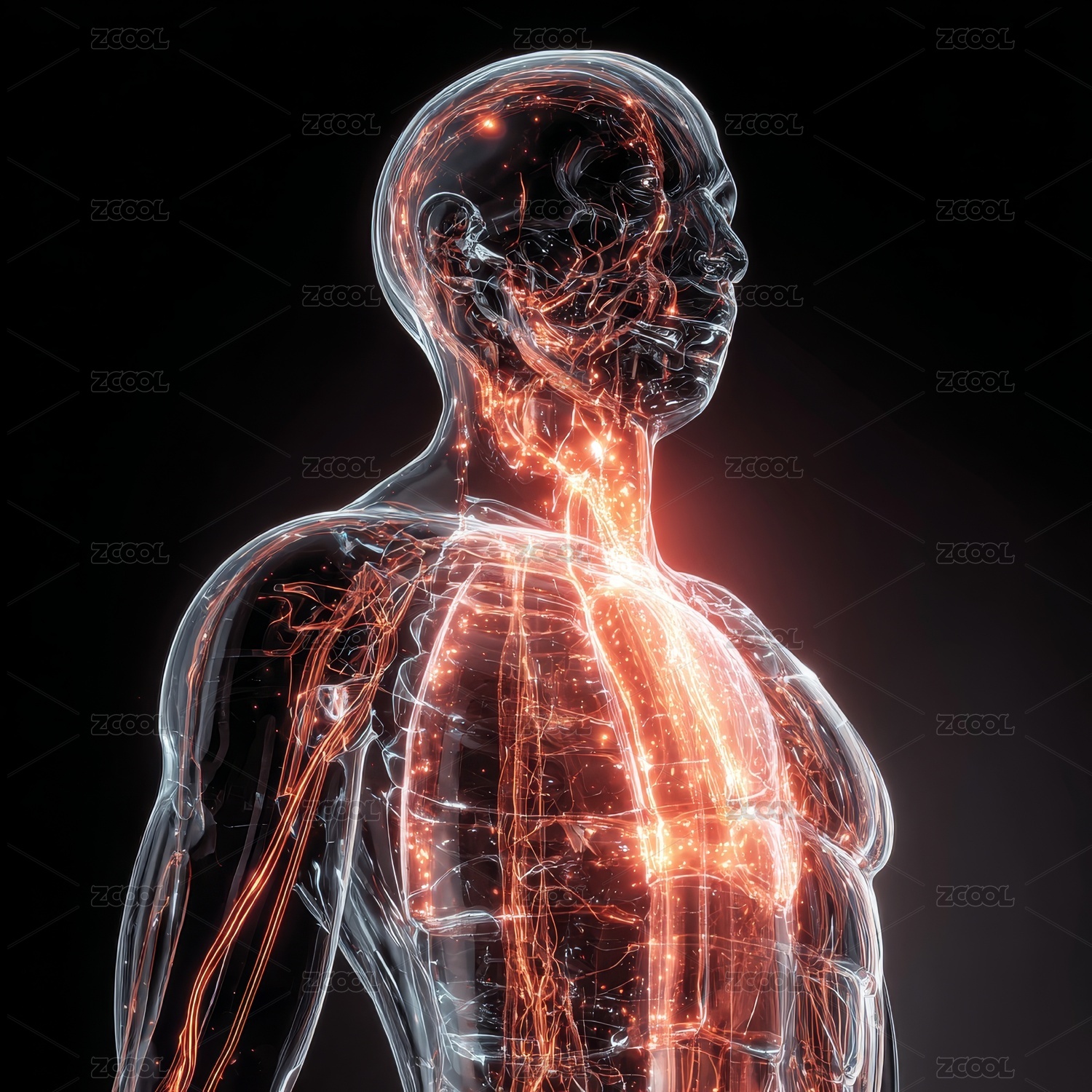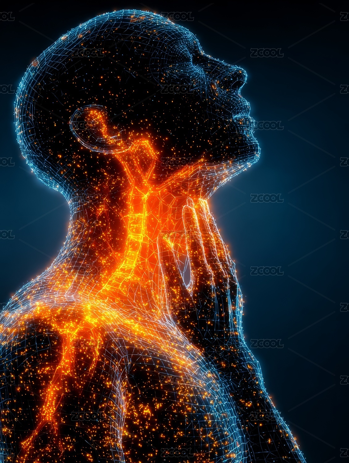人类,喉部,插图,照亮,卡通,红色,蓝色,着色,聚焦,喉头