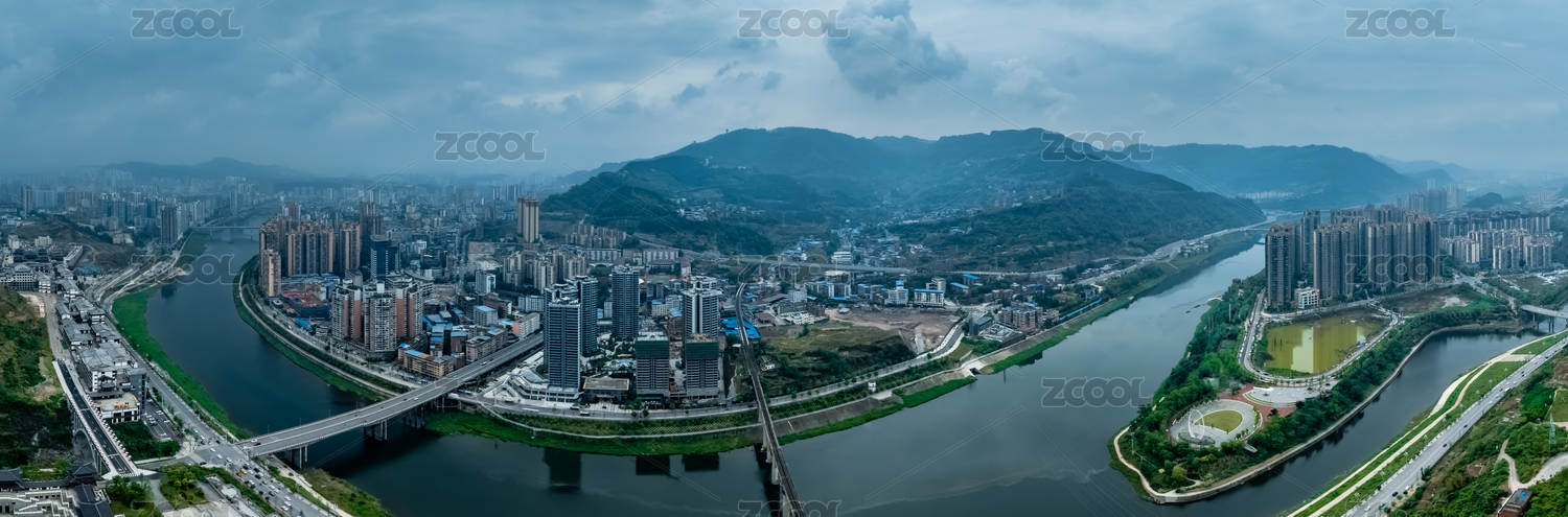 中国四川省达州市州河外滩高楼大厦建筑