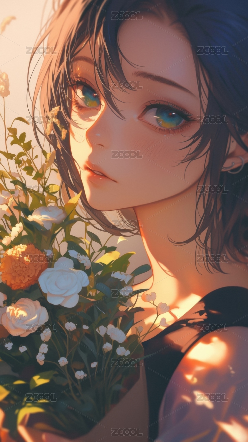 手捧花束的短发少女