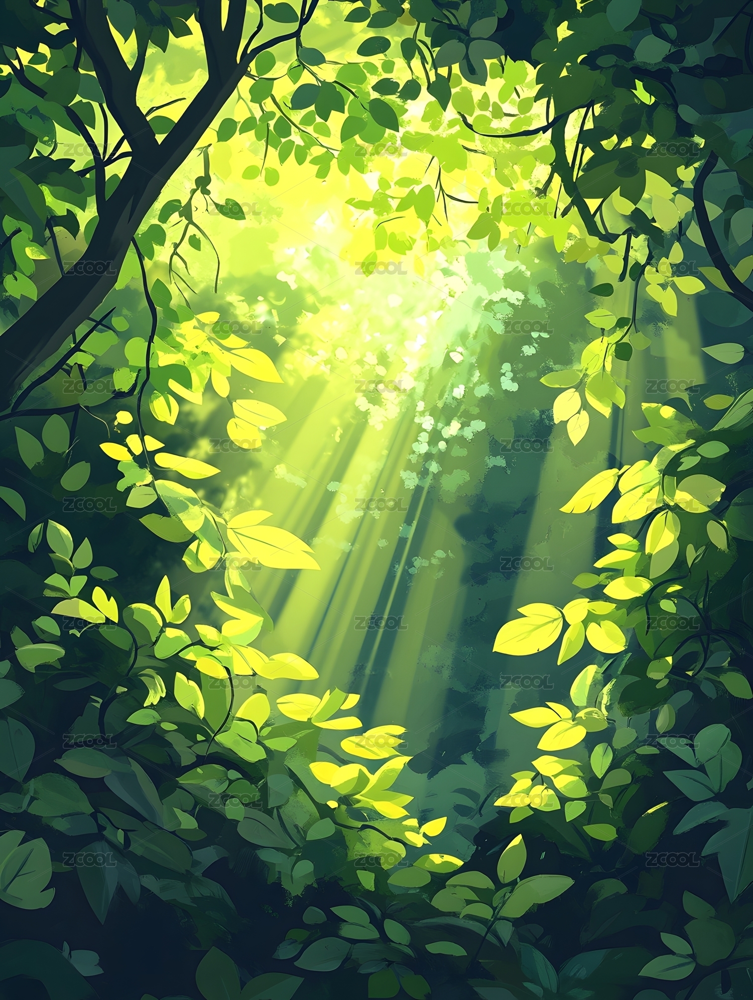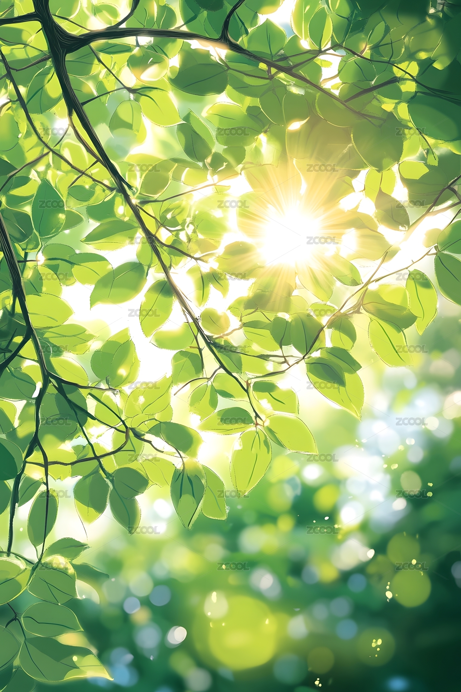 绿叶,树枝,光影,水彩,清新,自然,肌理,透亮,生机,静谧